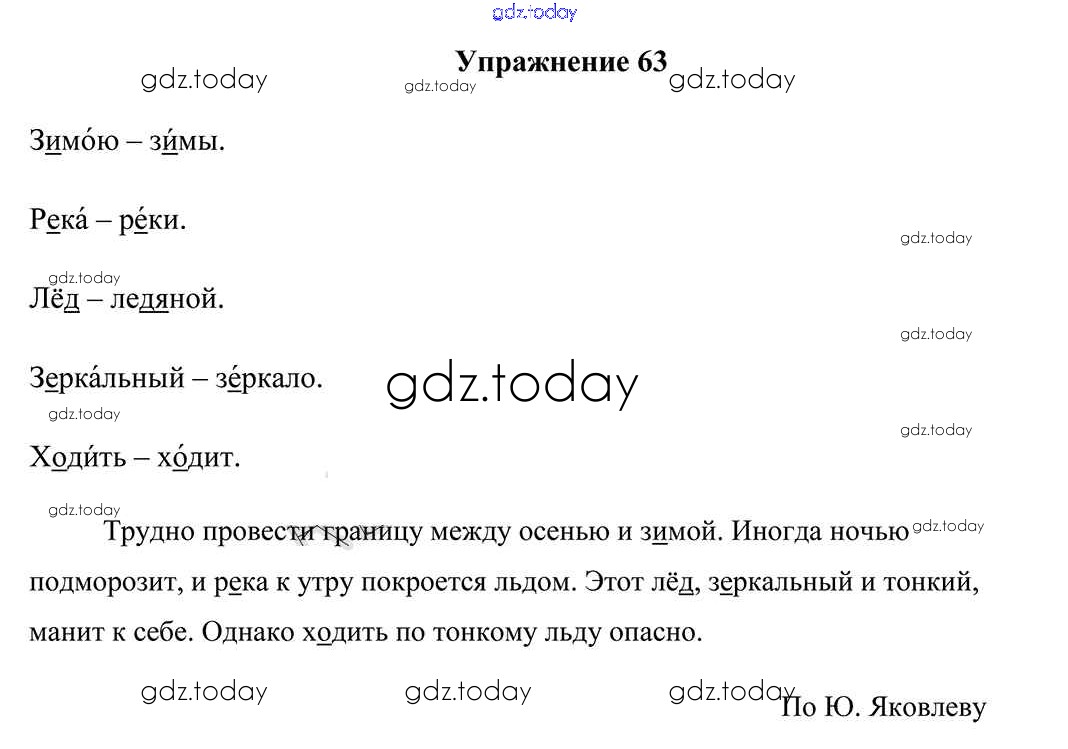 На страницах сайта gdz.today вы найдете учебный и вспомогательный материал, направленный на улучшения знаний школьной программы. ГДЗ - онлайн мир знаний Решение к части 2. Упражнения 63 Учебнику по Русскому языку для 3 класса Антипова, Верниковская Сэр-Вит 2019