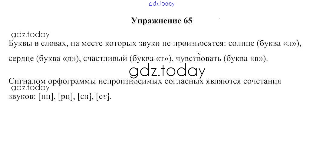 На страницах сайта gdz.today вы найдете учебный и вспомогательный материал, направленный на улучшения знаний школьной программы. ГДЗ - онлайн мир знаний Решение к части 2. Упражнения 65 Учебнику по Русскому языку для 3 класса Антипова, Верниковская Сэр-Вит 2019