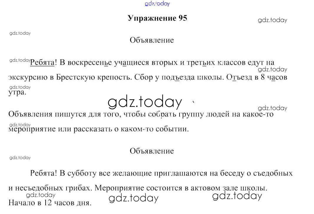 На страницах сайта gdz.today вы найдете учебный и вспомогательный материал, направленный на улучшения знаний школьной программы. ГДЗ - онлайн мир знаний Решение к части 2. Упражнения 95 Учебнику по Русскому языку для 3 класса Антипова, Верниковская Сэр-Вит 2019