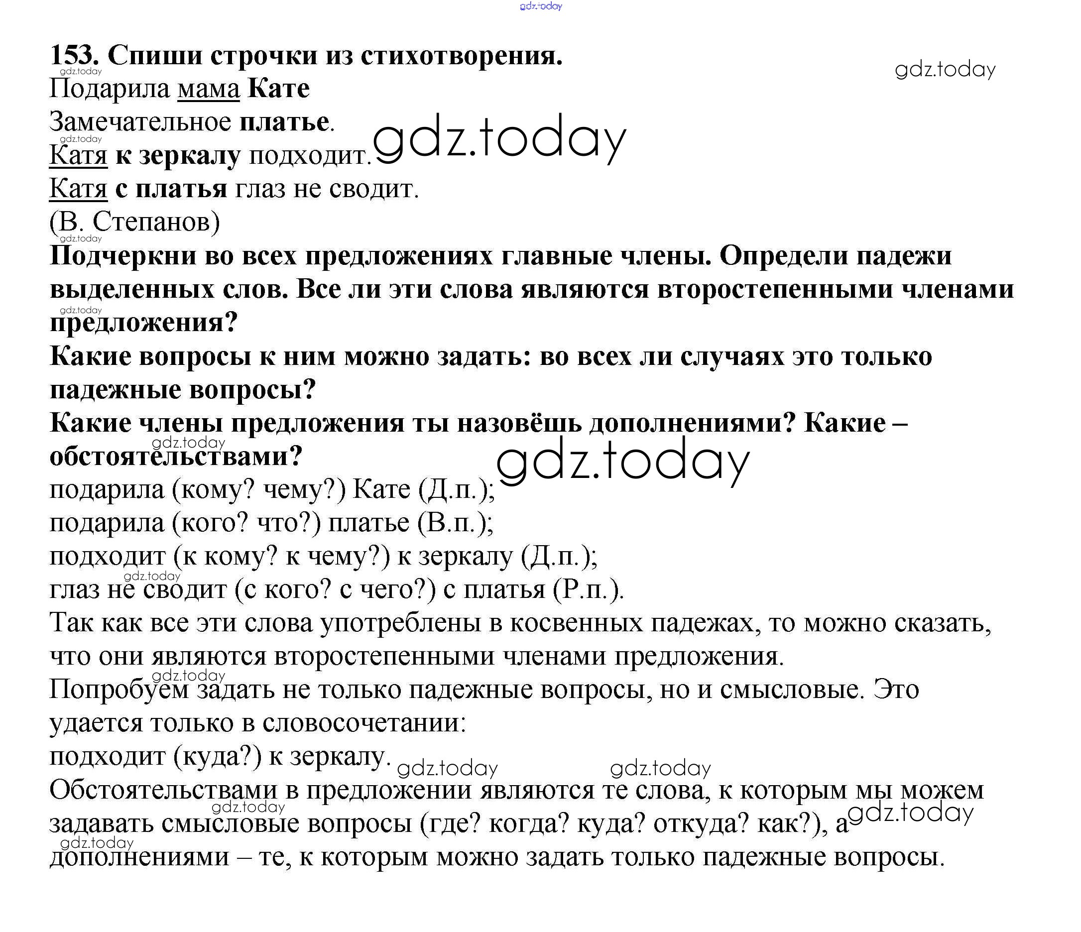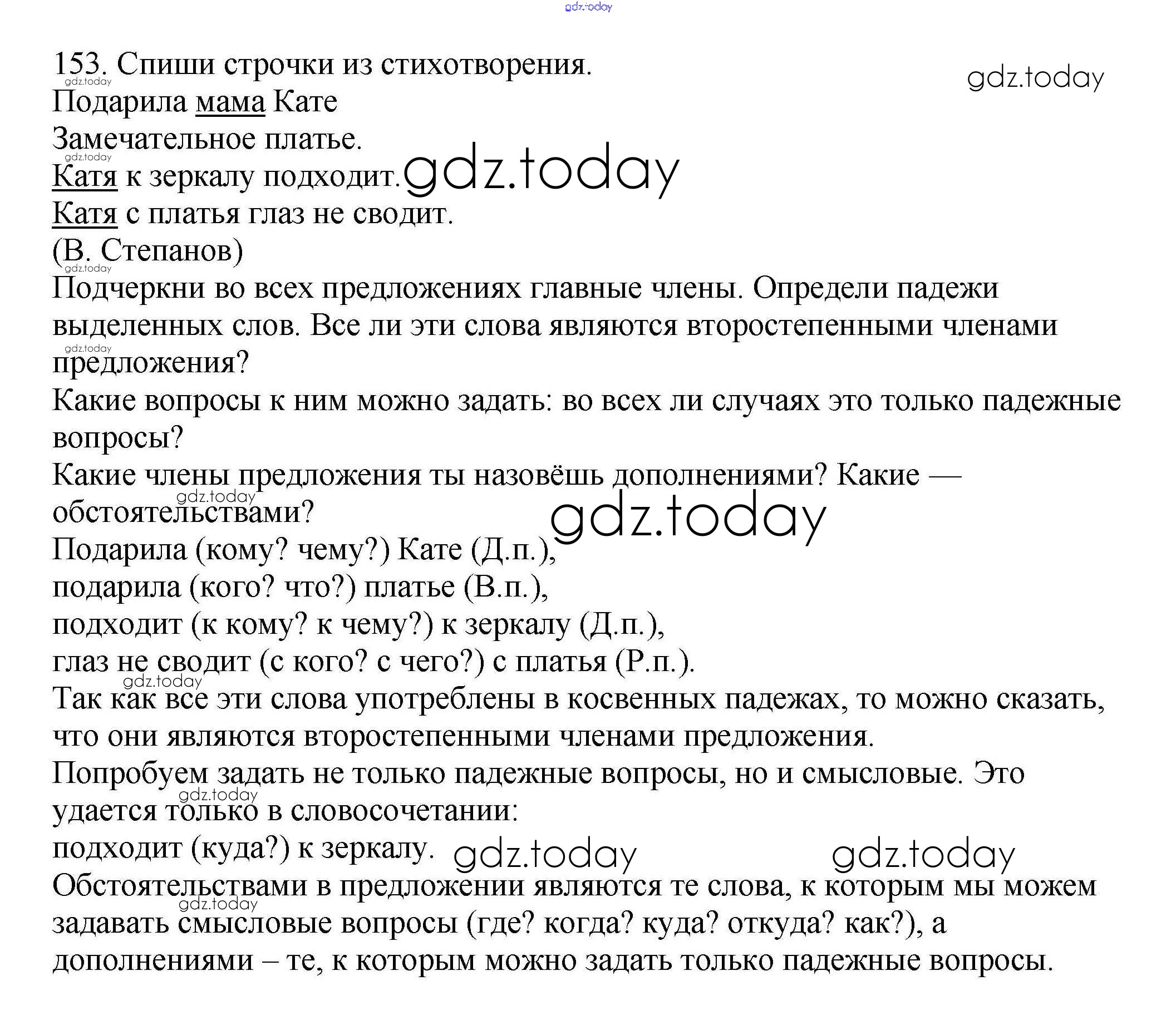 На страницах сайта gdz.today вы найдете учебный и вспомогательный материал, направленный на улучшения знаний школьной программы. ГДЗ - онлайн мир знаний Упражнения Решение к части 1 153 Учебнику по Русскому языку для 3 класса Каленчук, Чуракова Академкнига Перспективная начальная школа 2014