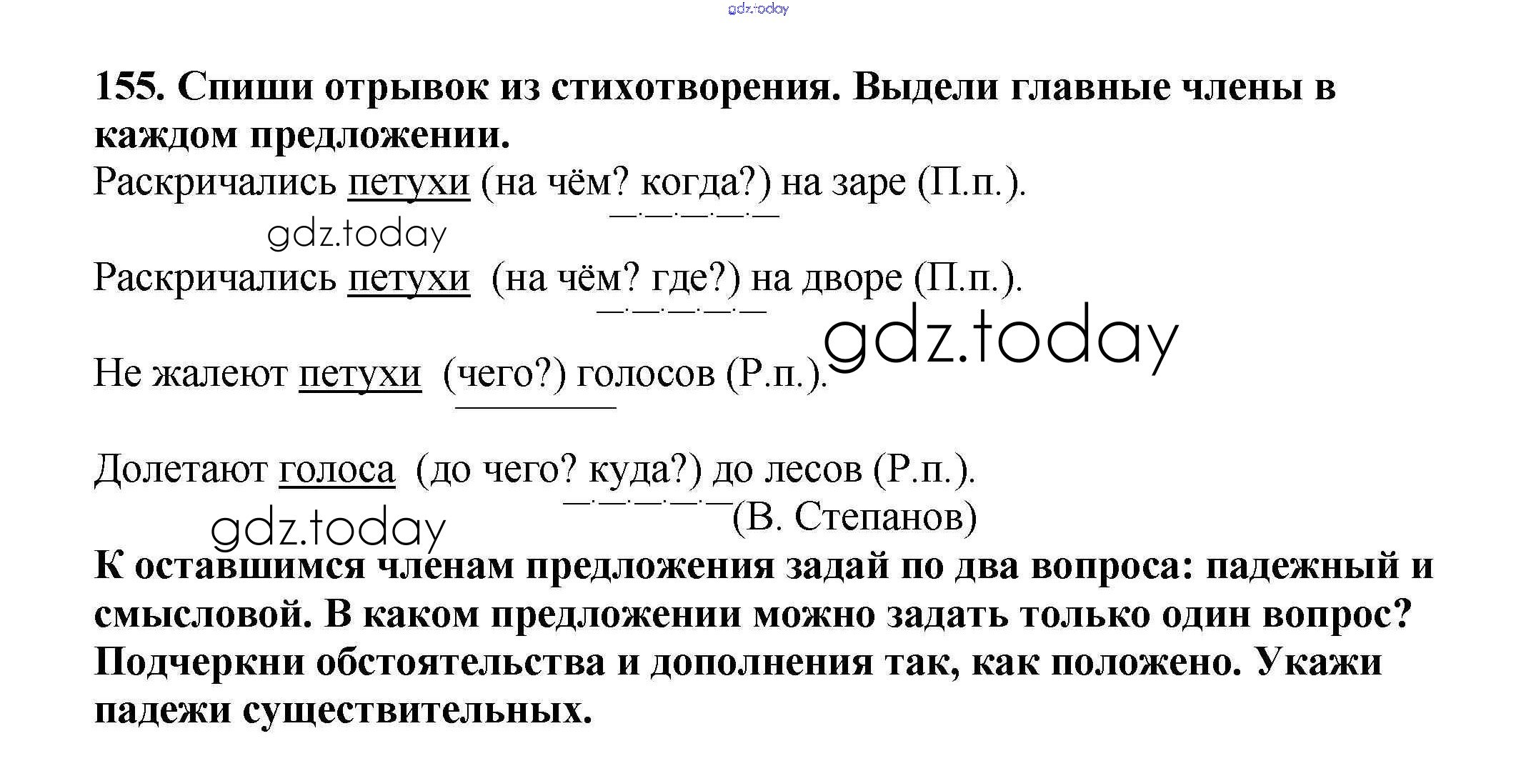 На страницах сайта gdz.today вы найдете учебный и вспомогательный материал, направленный на улучшения знаний школьной программы. ГДЗ - онлайн мир знаний Упражнения Решение к части 1 155 Учебнику по Русскому языку для 3 класса Каленчук, Чуракова Академкнига Перспективная начальная школа 2014
