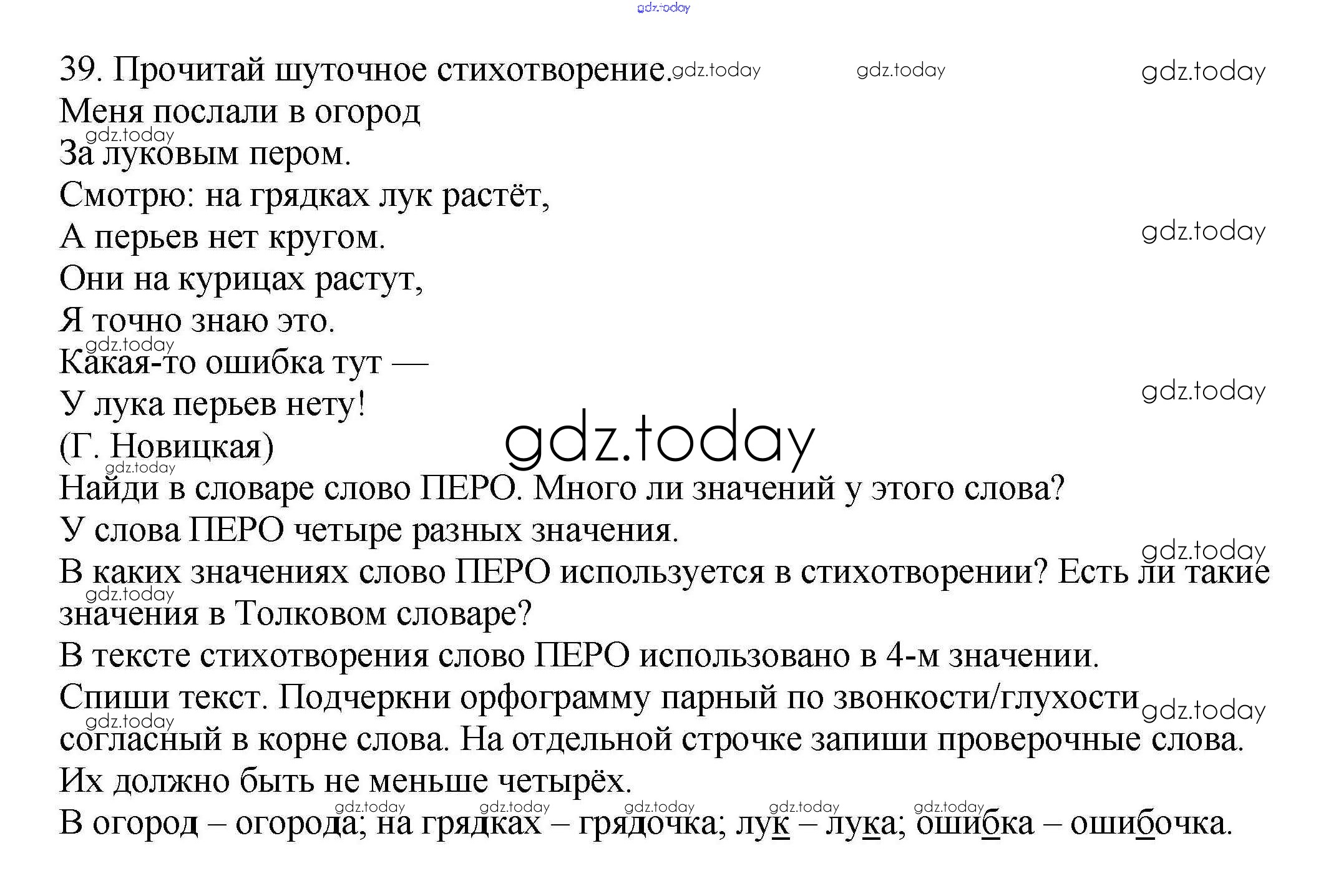 На страницах сайта gdz.today вы найдете учебный и вспомогательный материал, направленный на улучшения знаний школьной программы. ГДЗ - онлайн мир знаний Упражнения Решение к части 1 39 Учебнику по Русскому языку для 3 класса Каленчук, Чуракова Академкнига Перспективная начальная школа 2014