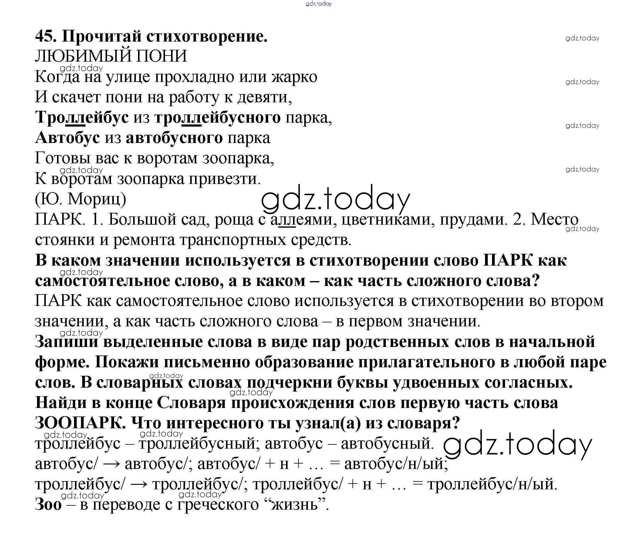 На страницах сайта gdz.today вы найдете учебный и вспомогательный материал, направленный на улучшения знаний школьной программы. ГДЗ - онлайн мир знаний Упражнения Решение к части 1 45 Учебнику по Русскому языку для 3 класса Каленчук, Чуракова Академкнига Перспективная начальная школа 2014
