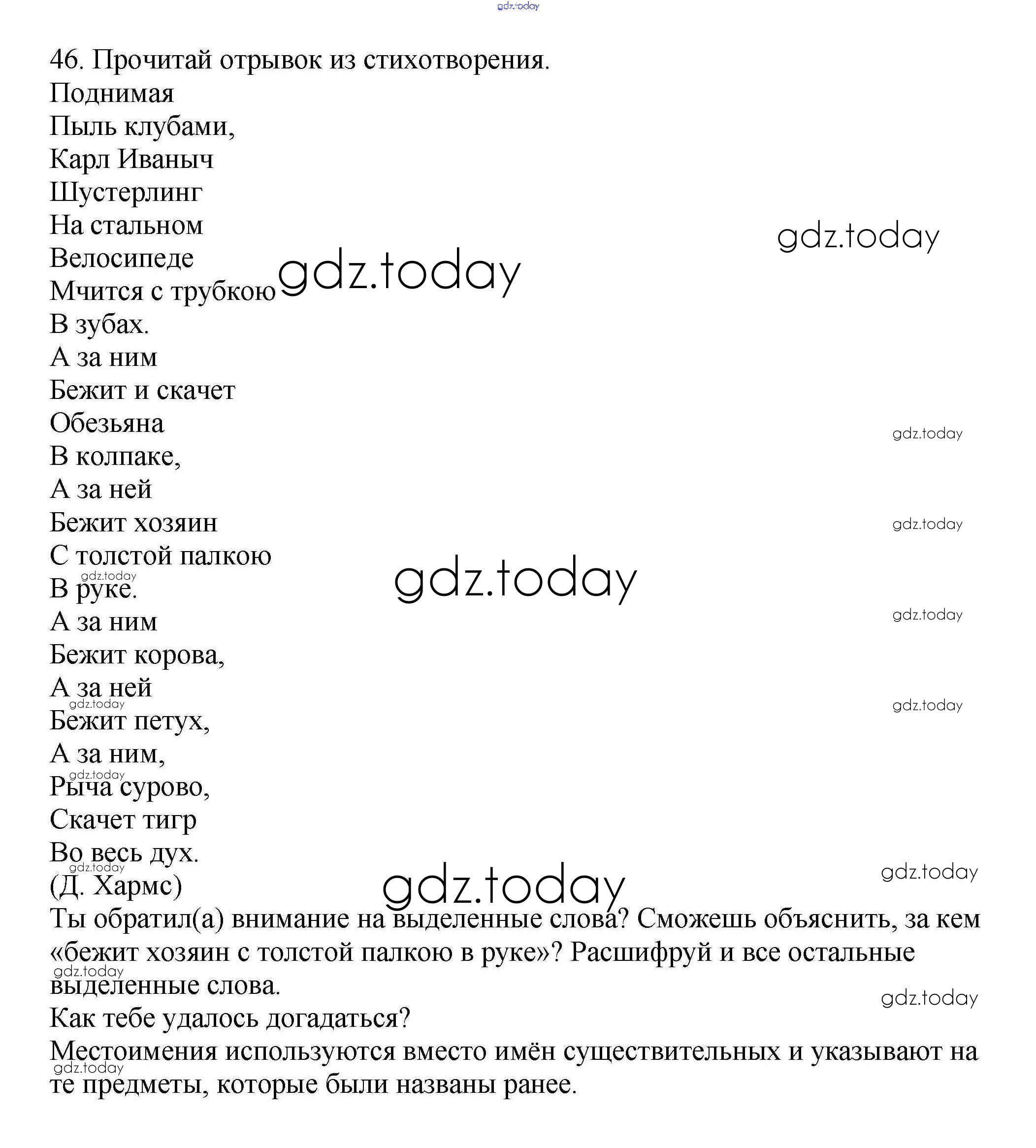 На страницах сайта gdz.today вы найдете учебный и вспомогательный материал, направленный на улучшения знаний школьной программы. ГДЗ - онлайн мир знаний Упражнения Решение к части 1 46 Учебнику по Русскому языку для 3 класса Каленчук, Чуракова Академкнига Перспективная начальная школа 2014