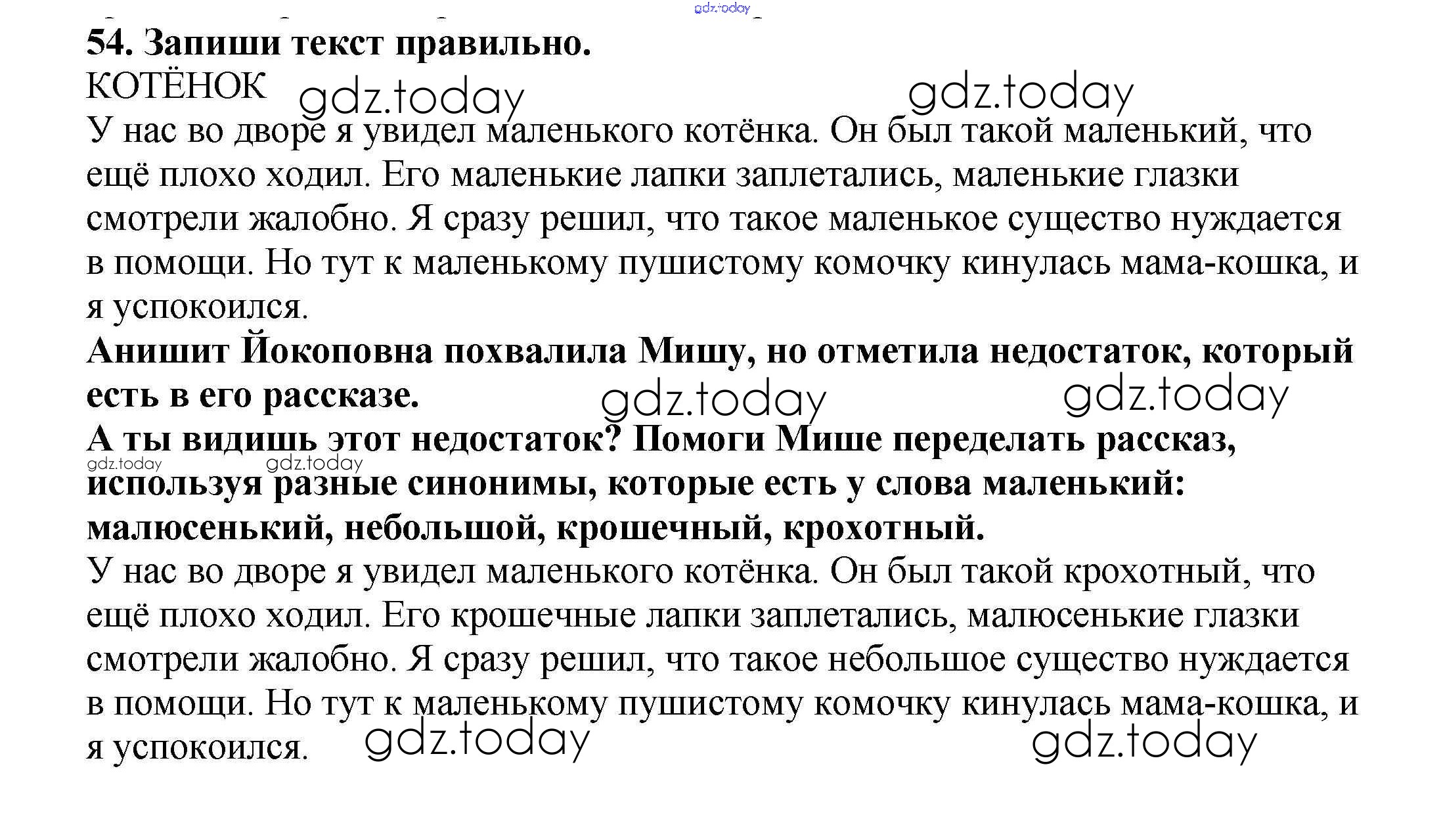 На страницах сайта gdz.today вы найдете учебный и вспомогательный материал, направленный на улучшения знаний школьной программы. ГДЗ - онлайн мир знаний Упражнения Решение к части 1 54 Учебнику по Русскому языку для 3 класса Каленчук, Чуракова Академкнига Перспективная начальная школа 2014