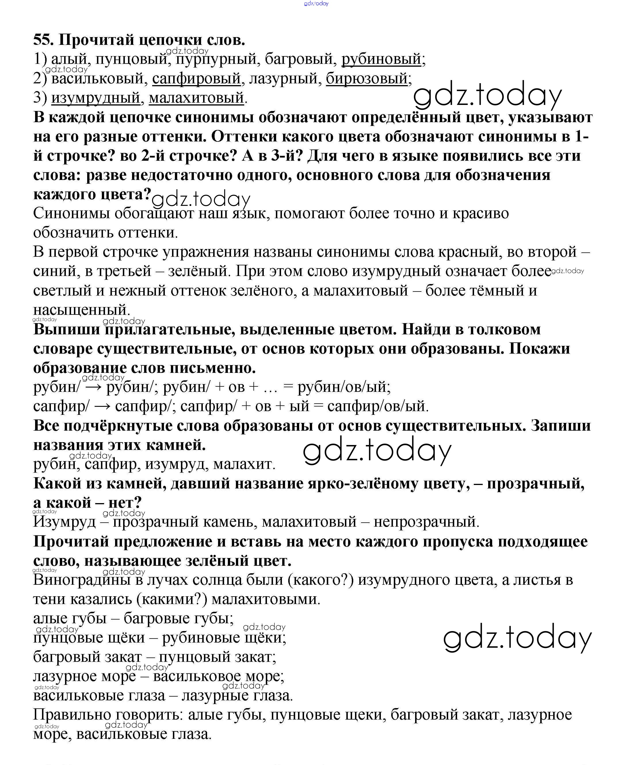 Ответы к Упражнения Решение к части 1 55 Учебнику по Русскому языку для 3 класса Каленчук, Чуракова Академкнига Перспективная начальная школа 2014