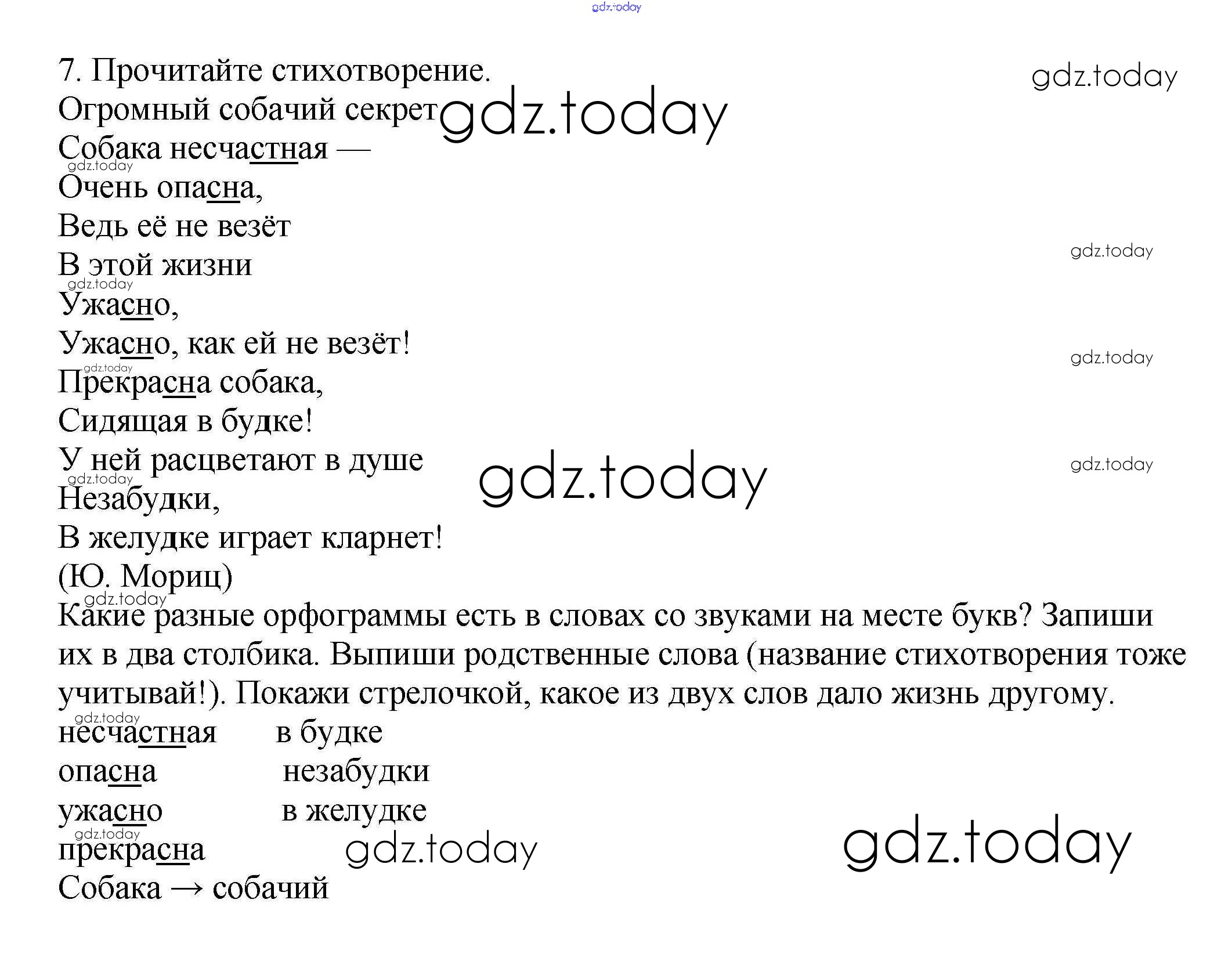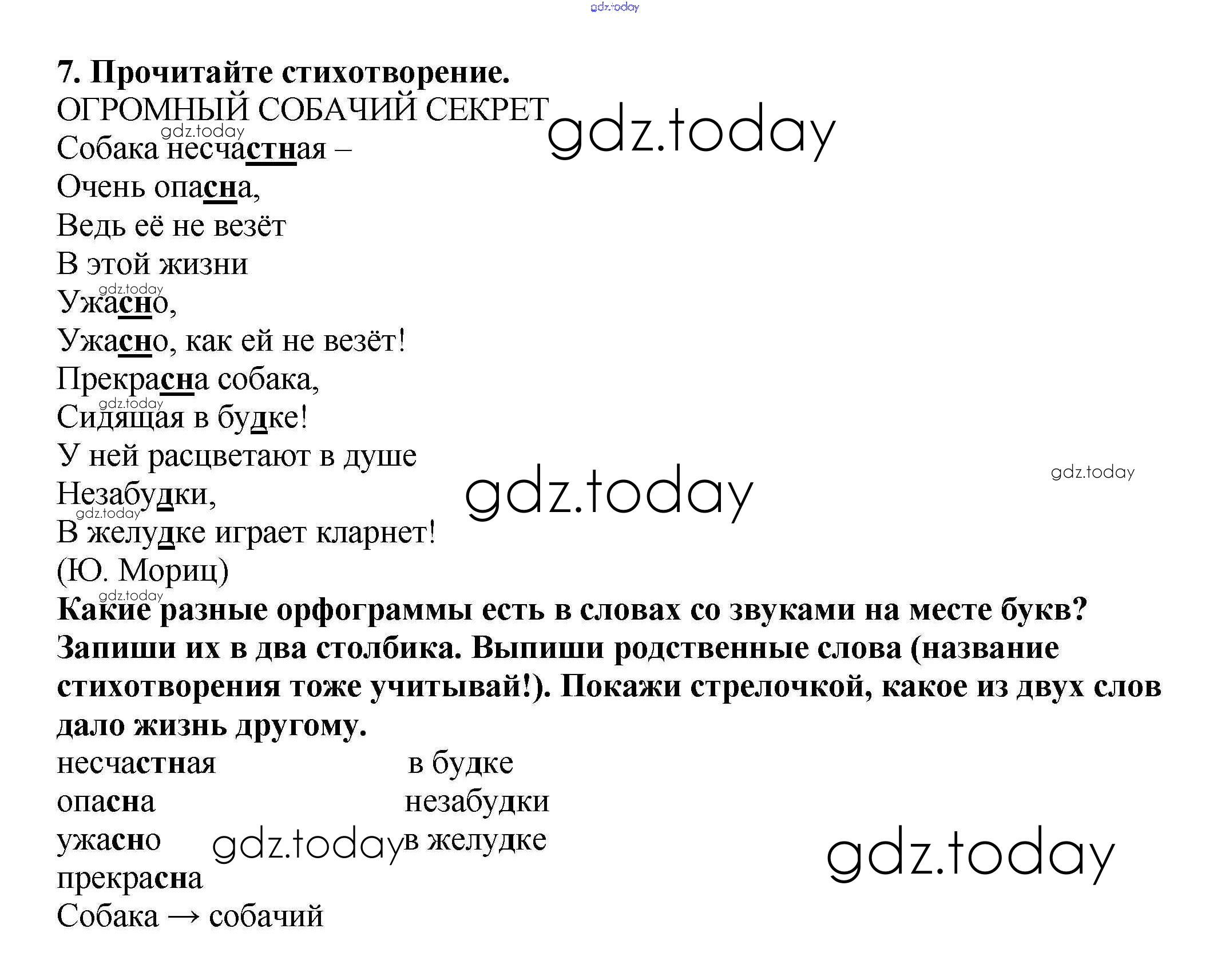 На страницах сайта gdz.today вы найдете учебный и вспомогательный материал, направленный на улучшения знаний школьной программы. ГДЗ - онлайн мир знаний Упражнения Решение к части 1 7 Учебнику по Русскому языку для 3 класса Каленчук, Чуракова Академкнига Перспективная начальная школа 2014