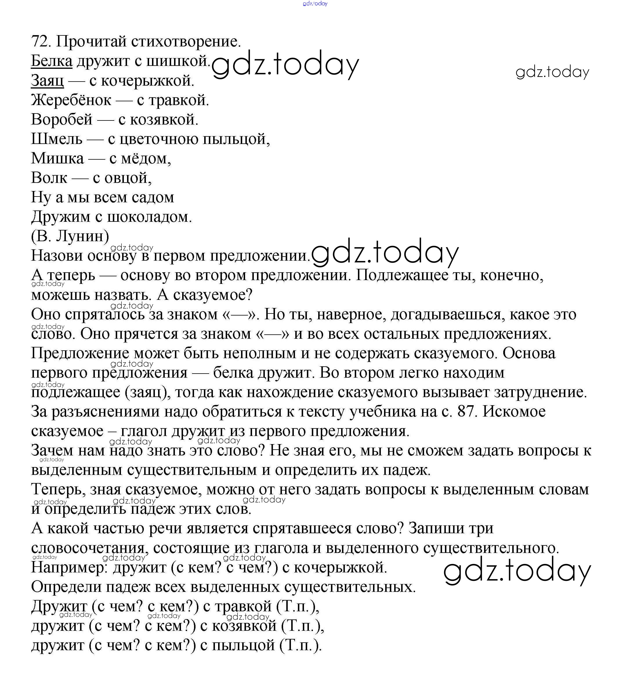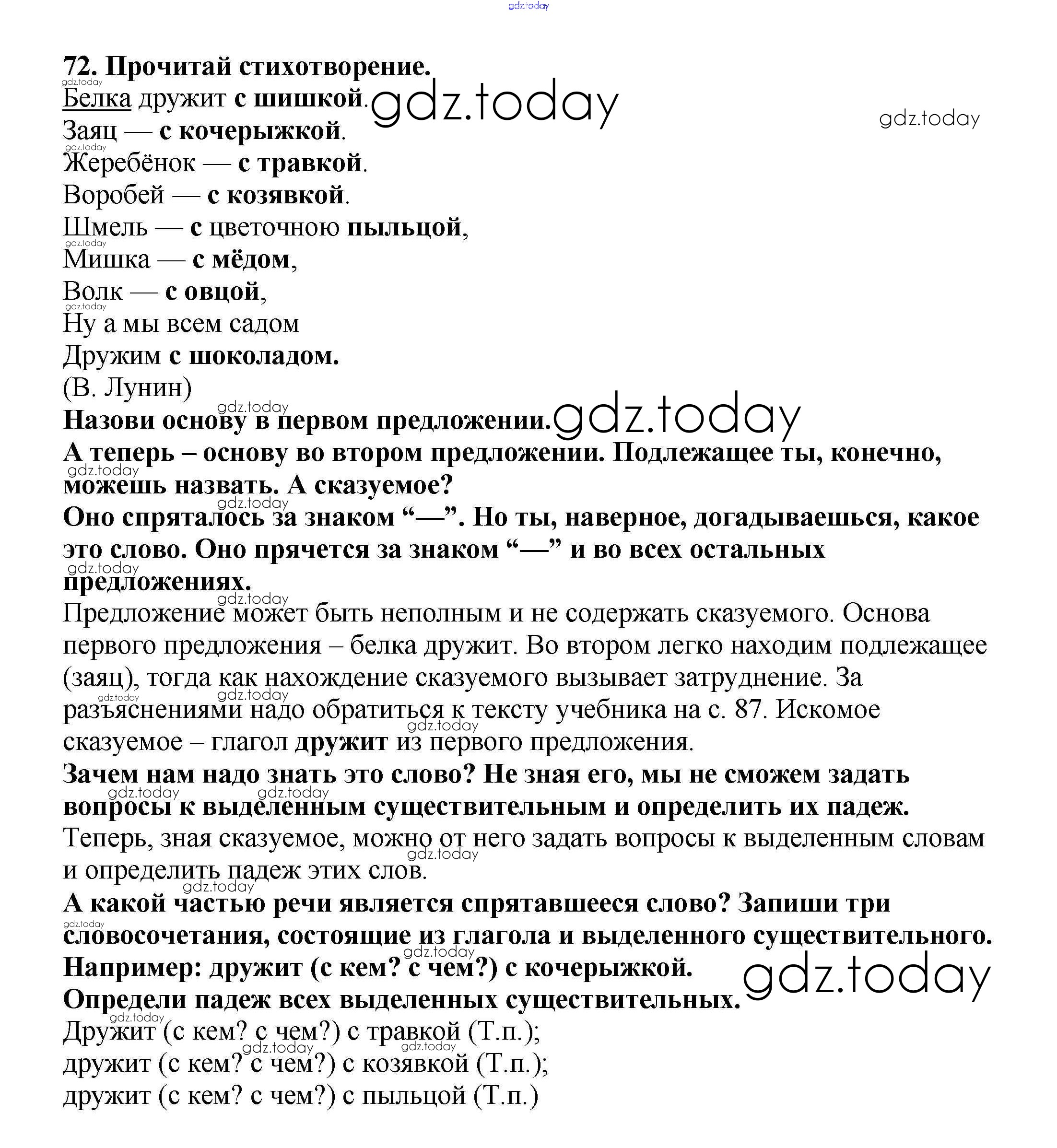 На страницах сайта gdz.today вы найдете учебный и вспомогательный материал, направленный на улучшения знаний школьной программы. ГДЗ - онлайн мир знаний Упражнения Решение к части 1 72 Учебнику по Русскому языку для 3 класса Каленчук, Чуракова Академкнига Перспективная начальная школа 2014