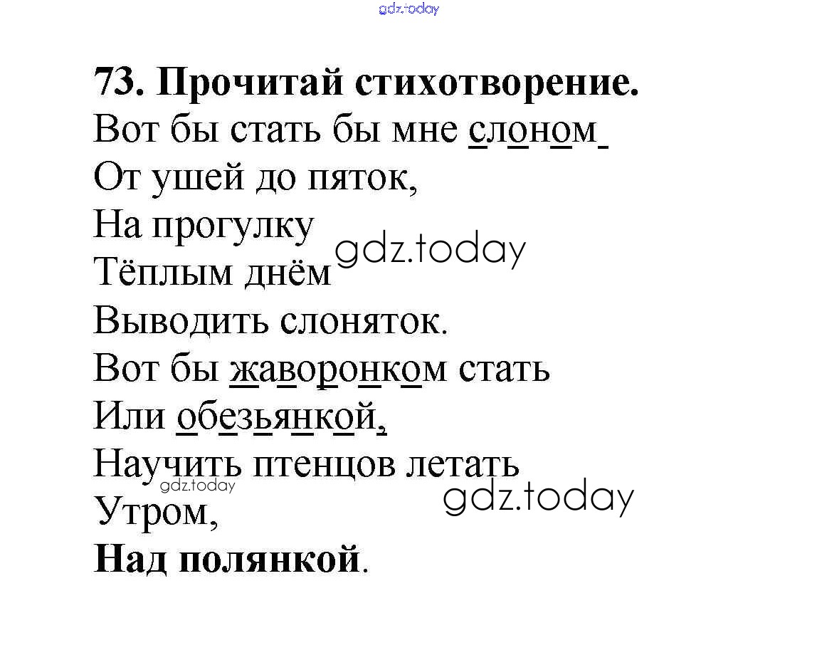 На страницах сайта gdz.today вы найдете учебный и вспомогательный материал, направленный на улучшения знаний школьной программы. ГДЗ - онлайн мир знаний Упражнения Решение к части 1 73 Учебнику по Русскому языку для 3 класса Каленчук, Чуракова Академкнига Перспективная начальная школа 2014
