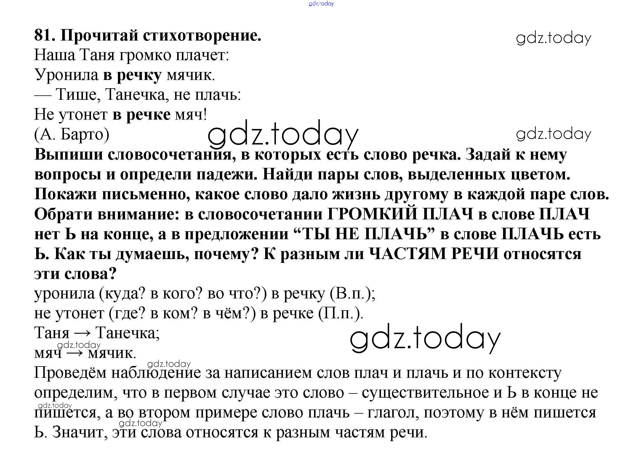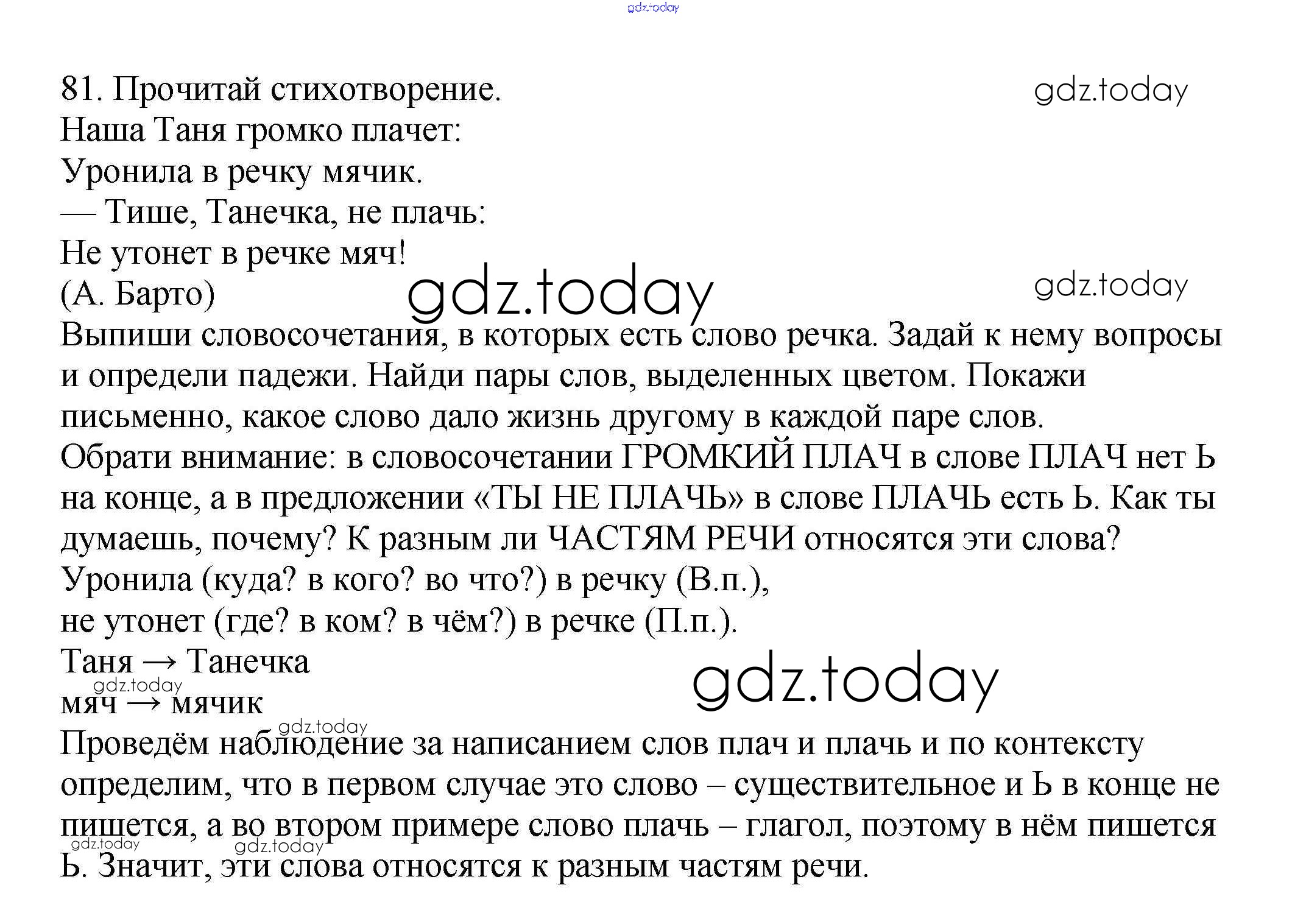 На страницах сайта gdz.today вы найдете учебный и вспомогательный материал, направленный на улучшения знаний школьной программы. ГДЗ - онлайн мир знаний Упражнения Решение к части 1 81 Учебнику по Русскому языку для 3 класса Каленчук, Чуракова Академкнига Перспективная начальная школа 2014