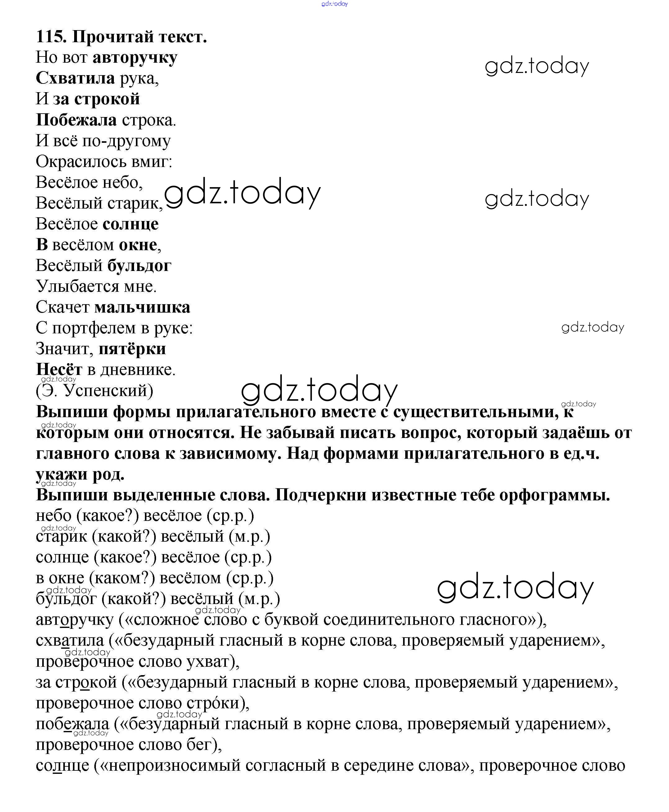 На страницах сайта gdz.today вы найдете учебный и вспомогательный материал, направленный на улучшения знаний школьной программы. ГДЗ - онлайн мир знаний Упражнения Решение к части 3 115 Учебнику по Русскому языку для 3 класса Каленчук, Чуракова Академкнига Перспективная начальная школа 2014