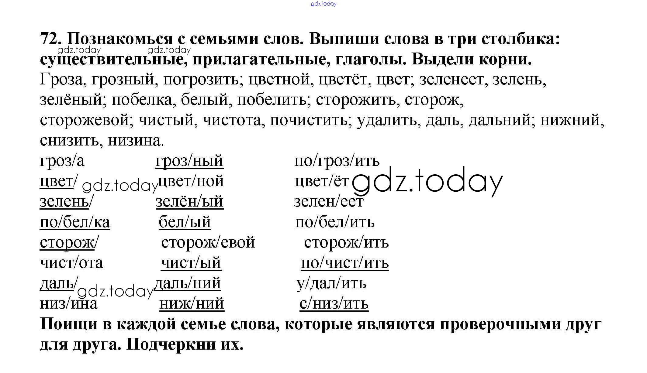 На страницах сайта gdz.today вы найдете учебный и вспомогательный материал, направленный на улучшения знаний школьной программы. ГДЗ - онлайн мир знаний Упражнения Решение к части 3 72 Учебнику по Русскому языку для 3 класса Каленчук, Чуракова Академкнига Перспективная начальная школа 2014