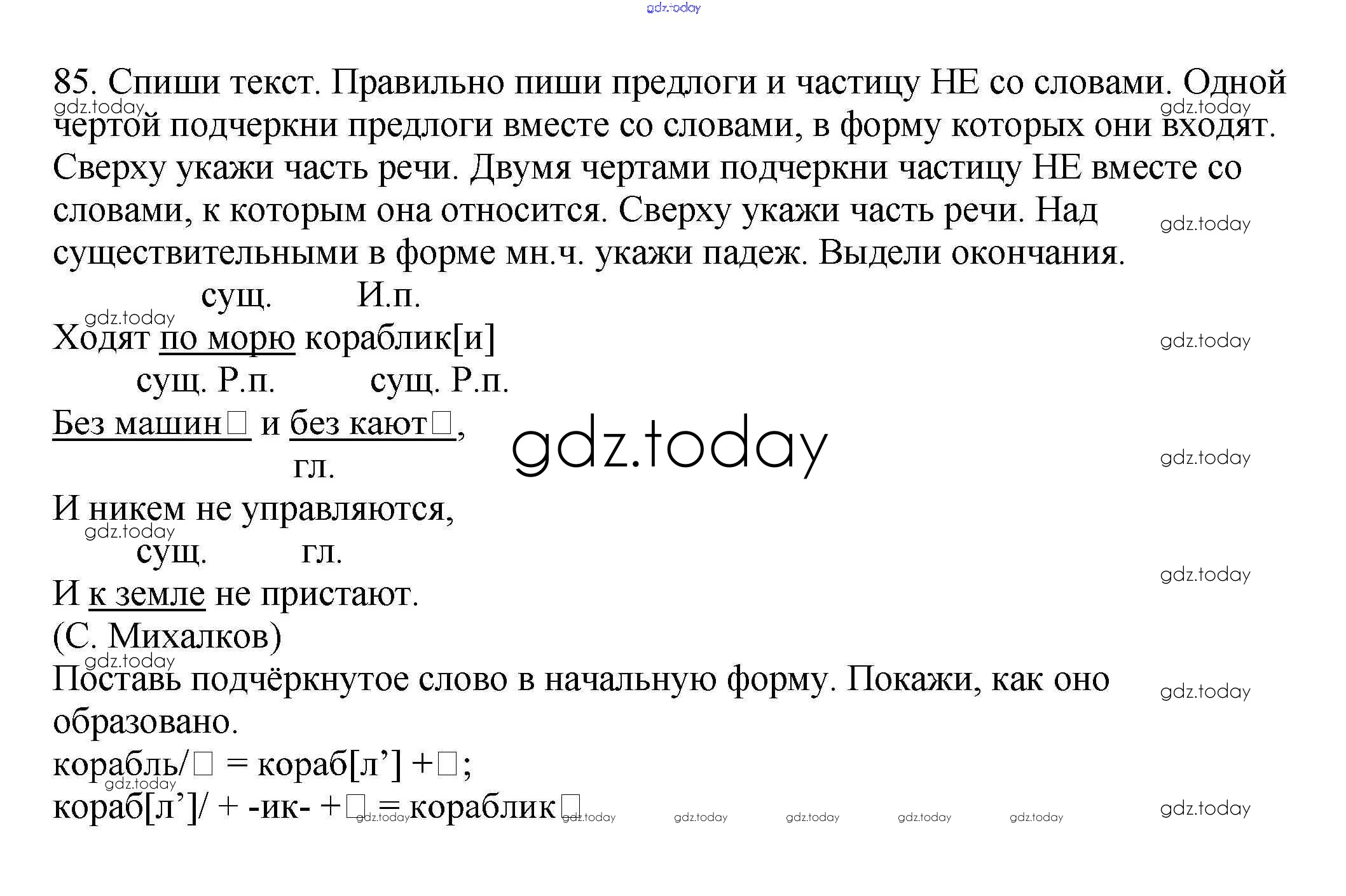 На страницах сайта gdz.today вы найдете учебный и вспомогательный материал, направленный на улучшения знаний школьной программы. ГДЗ - онлайн мир знаний Упражнения Решение к части 3 85 Учебнику по Русскому языку для 3 класса Каленчук, Чуракова Академкнига Перспективная начальная школа 2014
