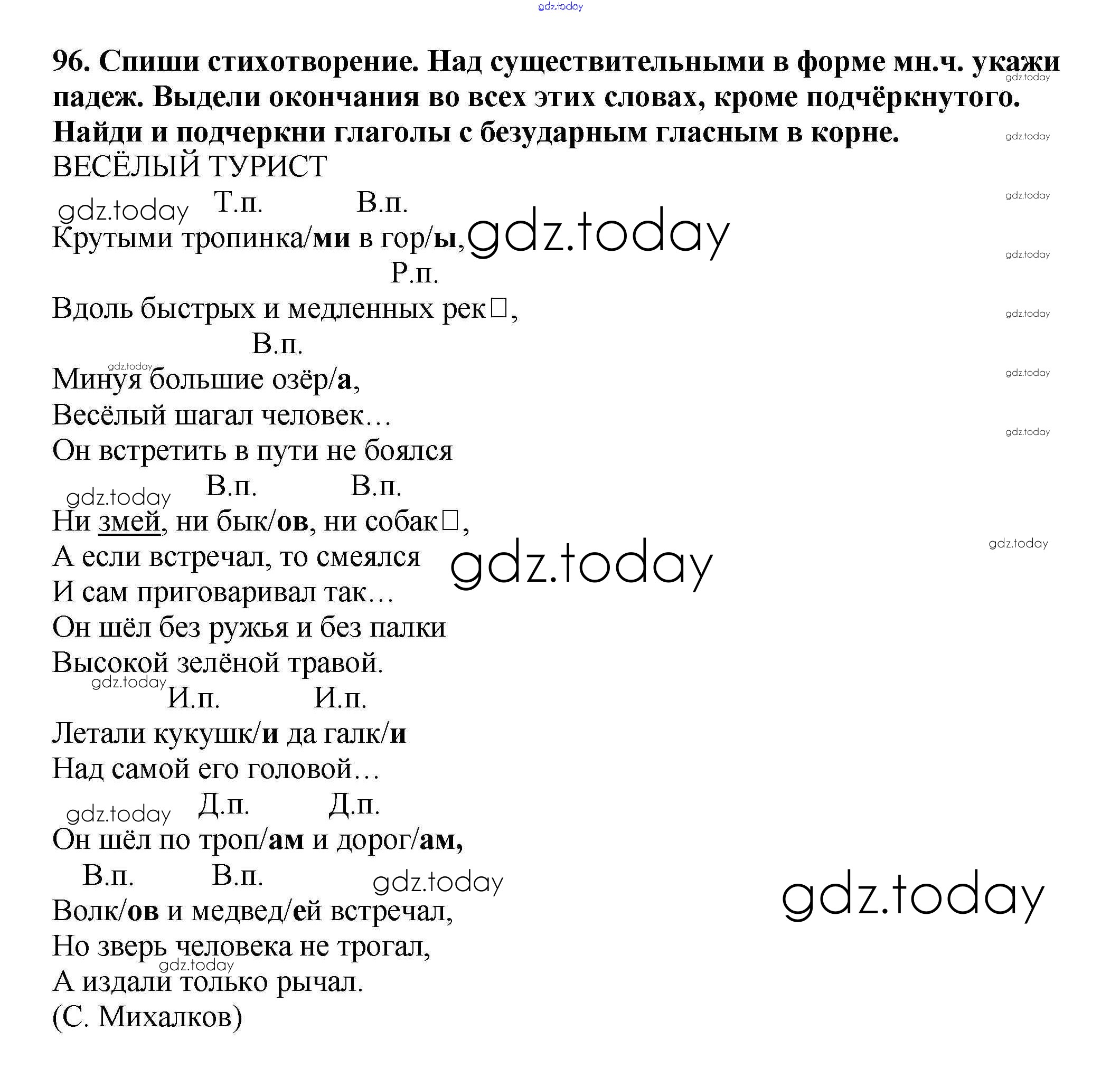 На страницах сайта gdz.today вы найдете учебный и вспомогательный материал, направленный на улучшения знаний школьной программы. ГДЗ - онлайн мир знаний Упражнения Решение к части 3 96 Учебнику по Русскому языку для 3 класса Каленчук, Чуракова Академкнига Перспективная начальная школа 2014