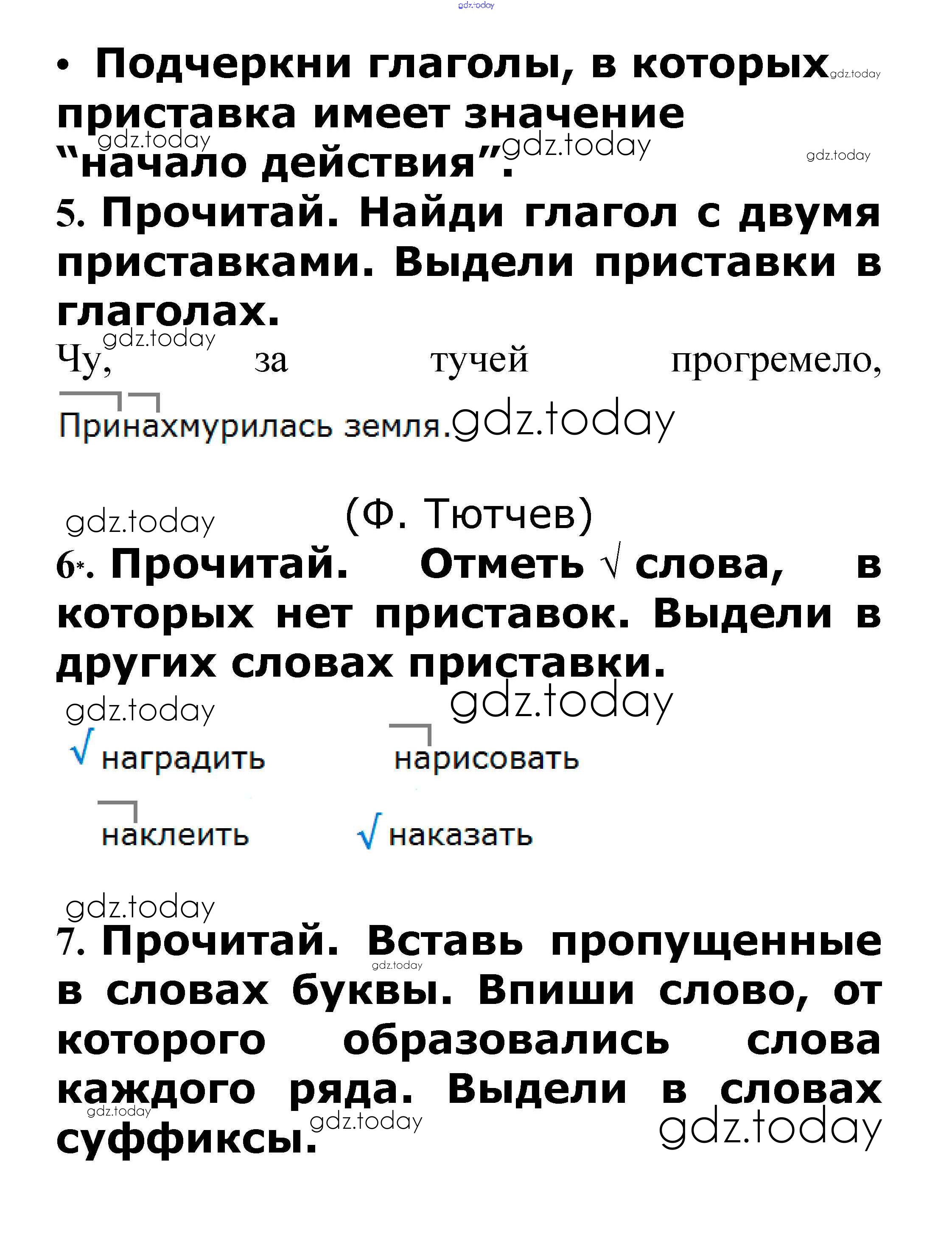 На страницах сайта gdz.today вы найдете учебный и вспомогательный материал, направленный на улучшения знаний школьной программы. ГДЗ - онлайн мир знаний Решение к теме "Состав слова" Приставка. Суффикс стр. 28 – 30 Проверочным работам по Русскому языку для 3 класса Канакина, Щеголева Просвещение Школа России 2018