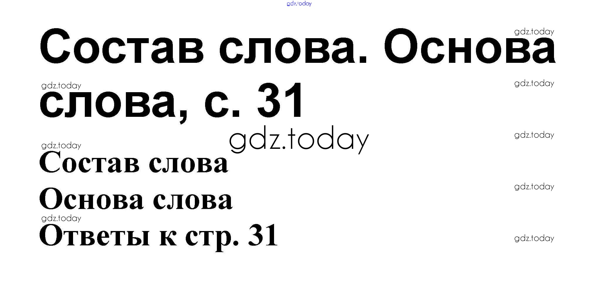 На страницах сайта gdz.today вы найдете учебный и вспомогательный материал, направленный на улучшения знаний школьной программы. ГДЗ - онлайн мир знаний Решение к теме "Состав слова" Основа слова стр. 31 Проверочным работам по Русскому языку для 3 класса Канакина, Щеголева Просвещение Школа России 2018