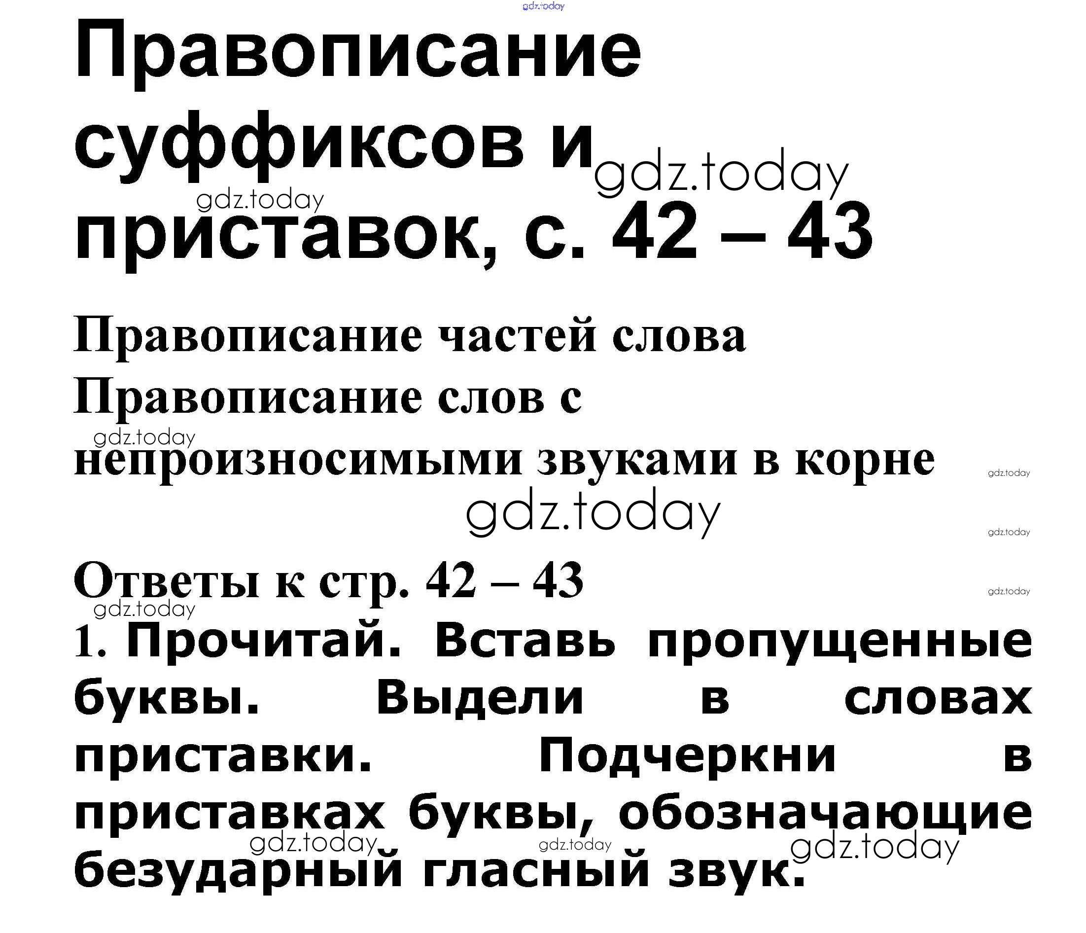 На страницах сайта gdz.today вы найдете учебный и вспомогательный материал, направленный на улучшения знаний школьной программы. ГДЗ - онлайн мир знаний Решение к теме "Правописание частей слова" Правописание слов с удвоенными согласными. Правописание суффиксов и приставок стр. 42 – 43 Проверочным работам по Русскому языку для 3 класса Канакина, Щеголева Просвещение Школа России 2018