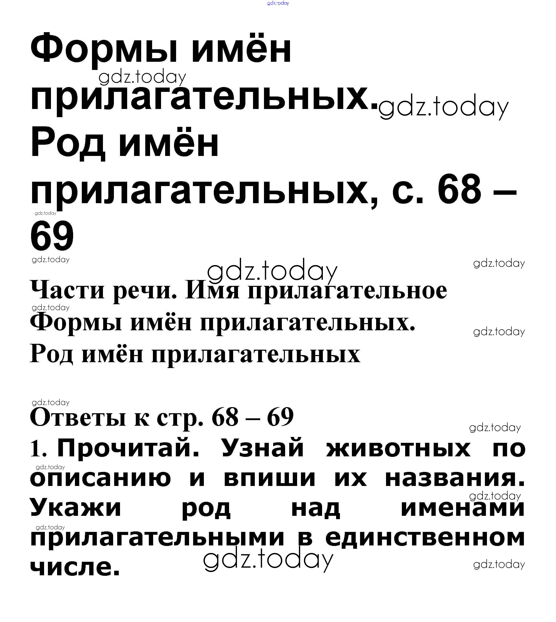 На страницах сайта gdz.today вы найдете учебный и вспомогательный материал, направленный на улучшения знаний школьной программы. ГДЗ - онлайн мир знаний Решение к теме "Имя прилагательное" Формы имён прилагательных. Род имён прилагательных стр. 68 – 69 Проверочным работам по Русскому языку для 3 класса Канакина, Щеголева Просвещение Школа России 2018
