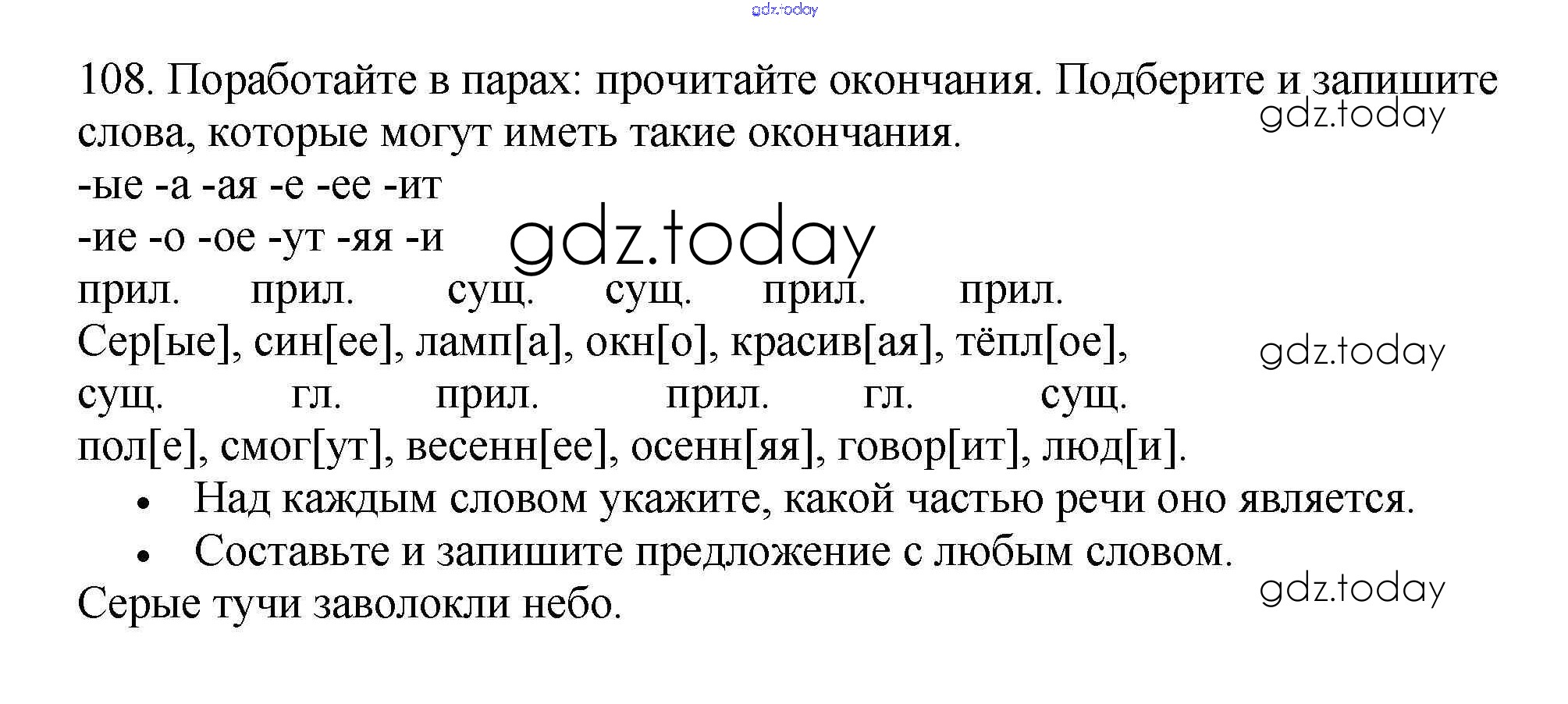 На страницах сайта gdz.today вы найдете учебный и вспомогательный материал, направленный на улучшения знаний школьной программы. ГДЗ - онлайн мир знаний Часть 1. Решение к упражнениям 108 Рабочей тетради по Русскому языку для 3 класса Канакина Просвещение Школа России 2012