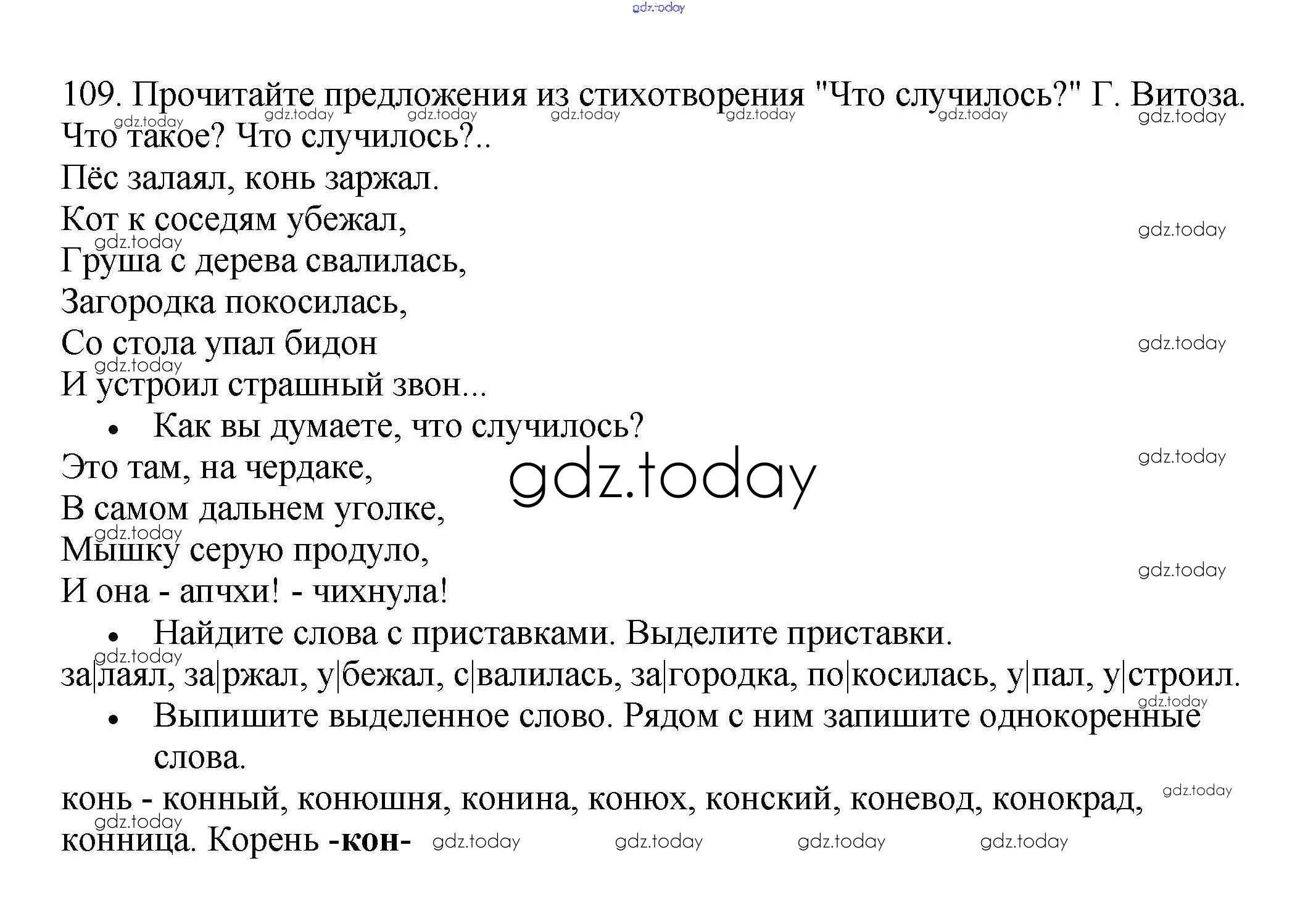 Ответы к Часть 1. Решение к упражнениям 109 Рабочей тетради по Русскому языку для 3 класса Канакина Просвещение Школа России 2012