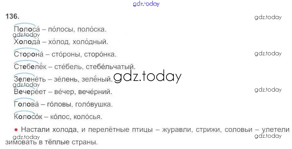 Ответы к Часть 1. Решение к упражнениям 136 Рабочей тетради по Русскому языку для 3 класса Канакина Просвещение Школа России 2012