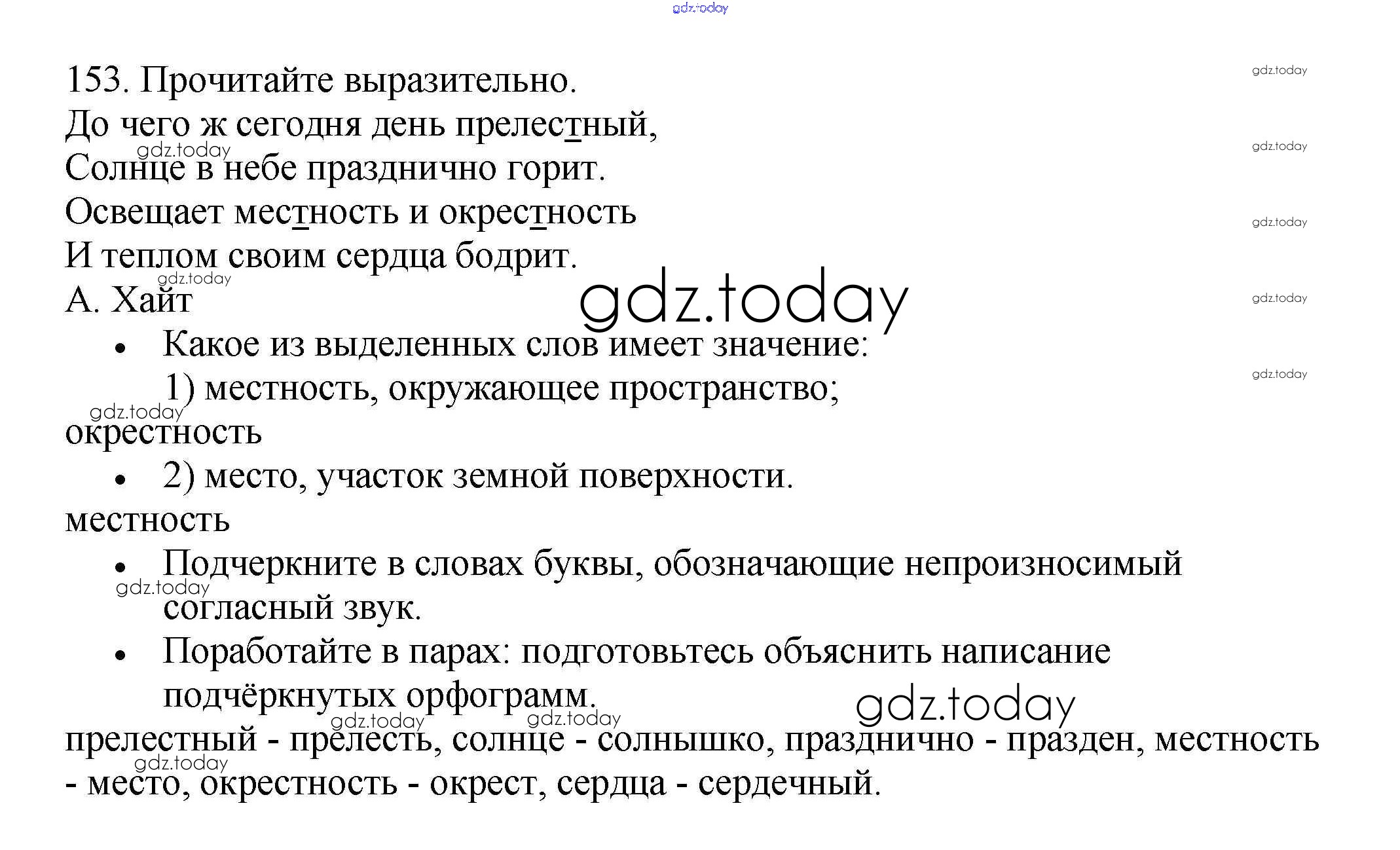 Ответы к Часть 1. Решение к упражнениям 153 Рабочей тетради по Русскому языку для 3 класса Канакина Просвещение Школа России 2012