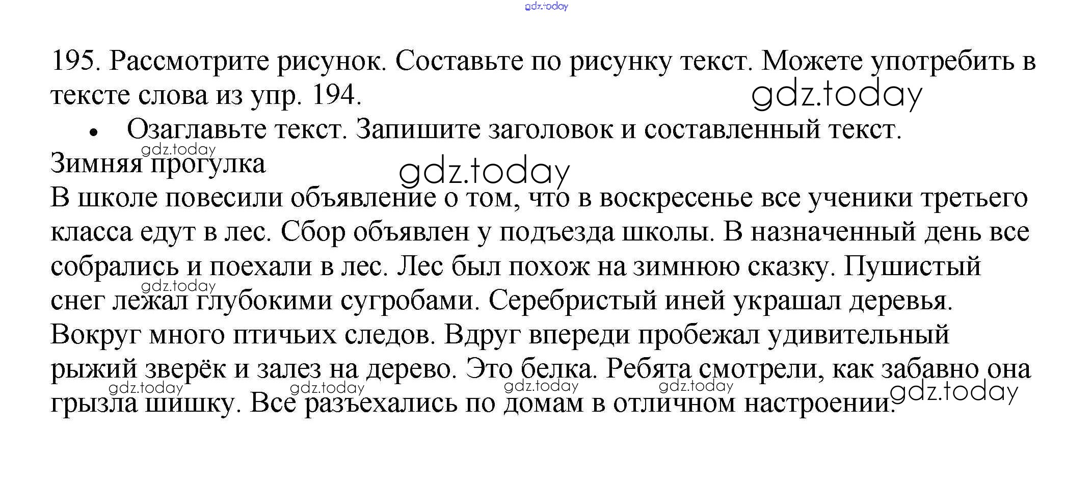 На страницах сайта gdz.today вы найдете учебный и вспомогательный материал, направленный на улучшения знаний школьной программы. ГДЗ - онлайн мир знаний Часть 1. Решение к упражнениям 195 Рабочей тетради по Русскому языку для 3 класса Канакина Просвещение Школа России 2012