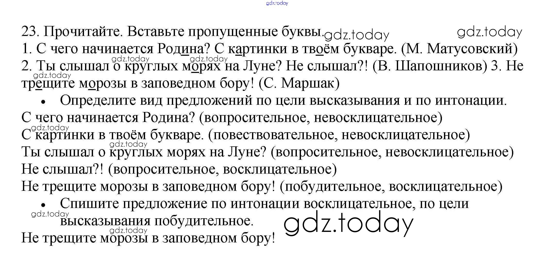 На страницах сайта gdz.today вы найдете учебный и вспомогательный материал, направленный на улучшения знаний школьной программы. ГДЗ - онлайн мир знаний Часть 1. Решение к упражнениям 23 Рабочей тетради по Русскому языку для 3 класса Канакина Просвещение Школа России 2012