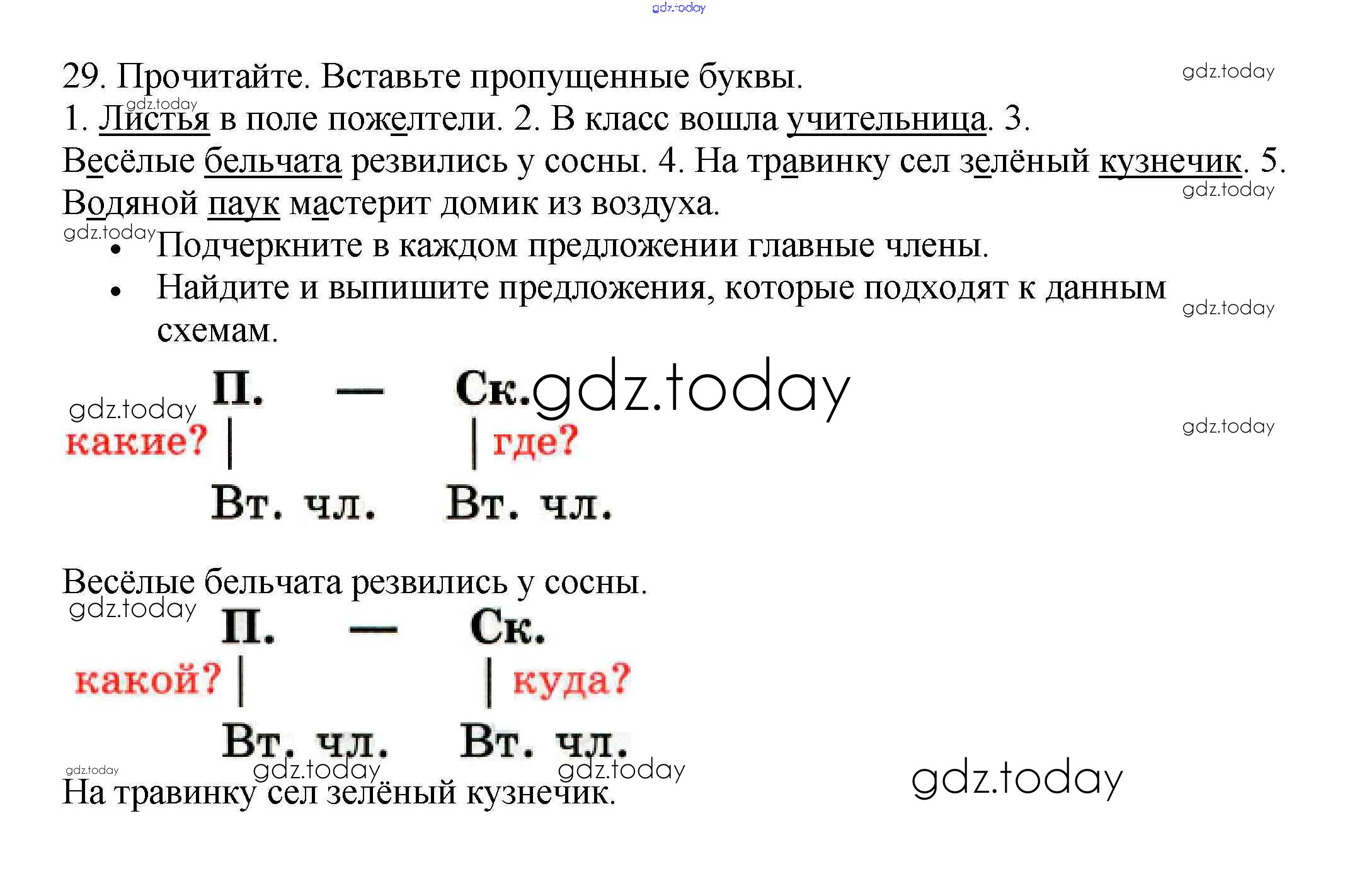 На страницах сайта gdz.today вы найдете учебный и вспомогательный материал, направленный на улучшения знаний школьной программы. ГДЗ - онлайн мир знаний Часть 1. Решение к упражнениям 29 Рабочей тетради по Русскому языку для 3 класса Канакина Просвещение Школа России 2012