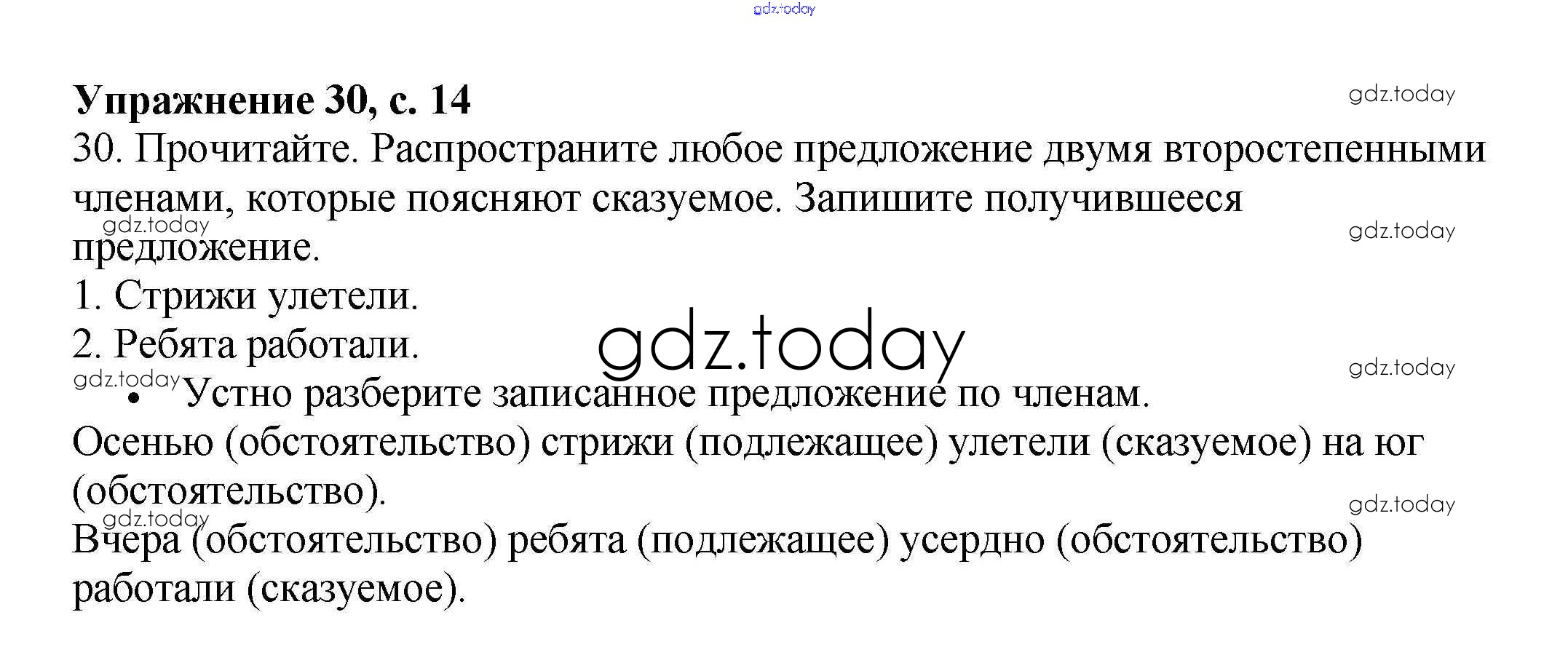 На страницах сайта gdz.today вы найдете учебный и вспомогательный материал, направленный на улучшения знаний школьной программы. ГДЗ - онлайн мир знаний Часть 1. Решение к упражнениям 30 Рабочей тетради по Русскому языку для 3 класса Канакина Просвещение Школа России 2012