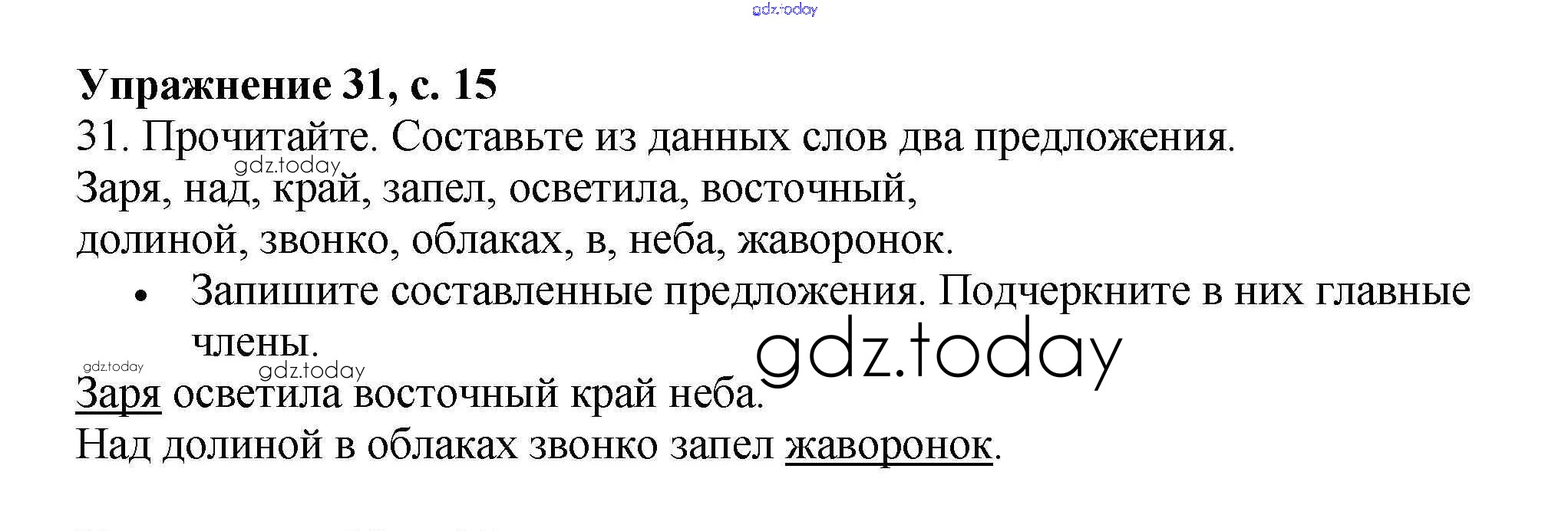 На страницах сайта gdz.today вы найдете учебный и вспомогательный материал, направленный на улучшения знаний школьной программы. ГДЗ - онлайн мир знаний Часть 1. Решение к упражнениям 31 Рабочей тетради по Русскому языку для 3 класса Канакина Просвещение Школа России 2012