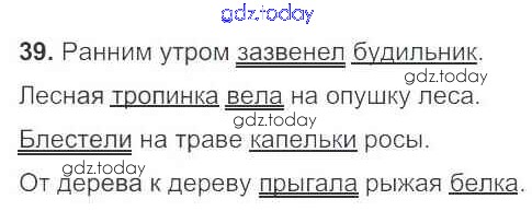 Ответы к Часть 1. Решение к упражнениям 39 Рабочей тетради по Русскому языку для 3 класса Канакина Просвещение Школа России 2012