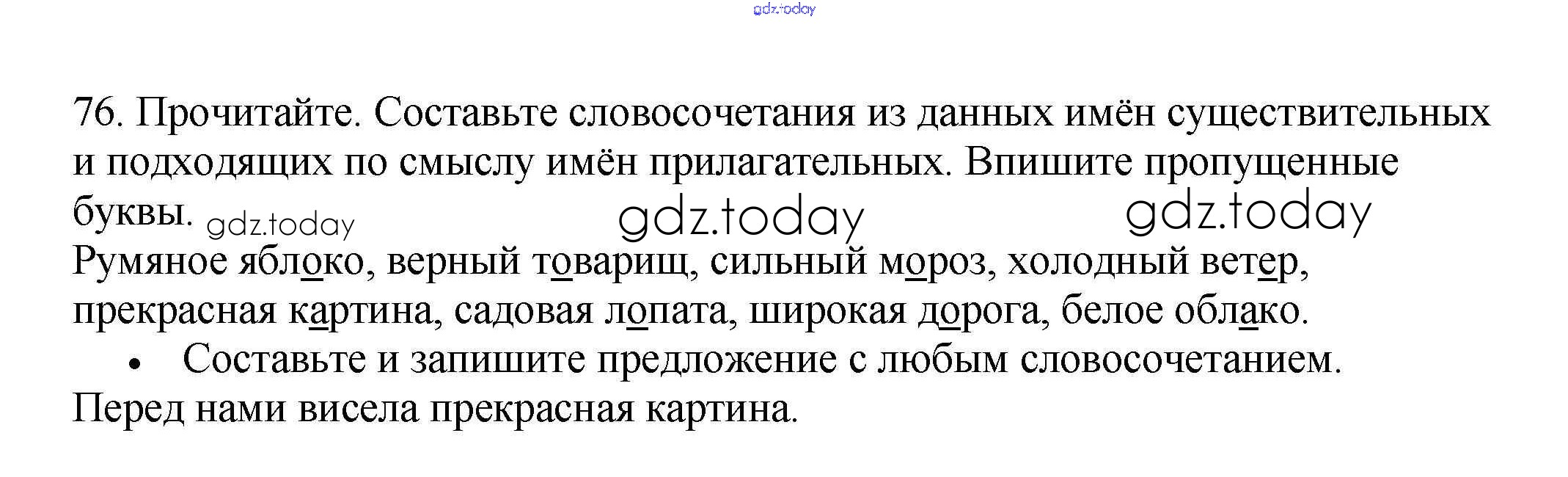 На страницах сайта gdz.today вы найдете учебный и вспомогательный материал, направленный на улучшения знаний школьной программы. ГДЗ - онлайн мир знаний Часть 1. Решение к упражнениям 76 Рабочей тетради по Русскому языку для 3 класса Канакина Просвещение Школа России 2012