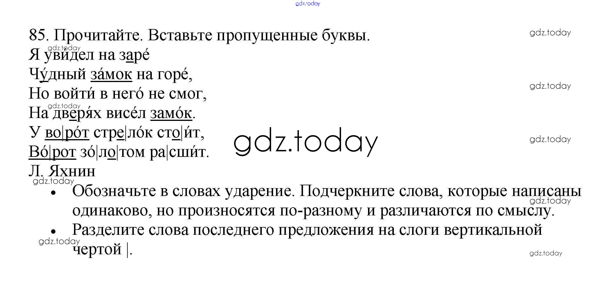 На страницах сайта gdz.today вы найдете учебный и вспомогательный материал, направленный на улучшения знаний школьной программы. ГДЗ - онлайн мир знаний Часть 1. Решение к упражнениям 85 Рабочей тетради по Русскому языку для 3 класса Канакина Просвещение Школа России 2012
