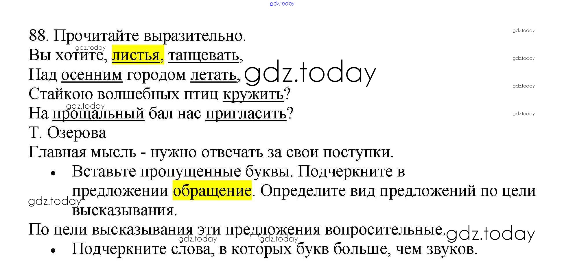 На страницах сайта gdz.today вы найдете учебный и вспомогательный материал, направленный на улучшения знаний школьной программы. ГДЗ - онлайн мир знаний Часть 1. Решение к упражнениям 88 Рабочей тетради по Русскому языку для 3 класса Канакина Просвещение Школа России 2012