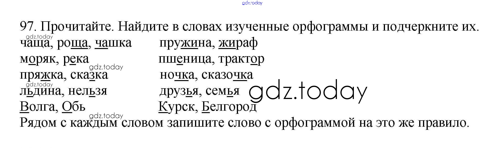 Ответы к Часть 1. Решение к упражнениям 97 Рабочей тетради по Русскому языку для 3 класса Канакина Просвещение Школа России 2012