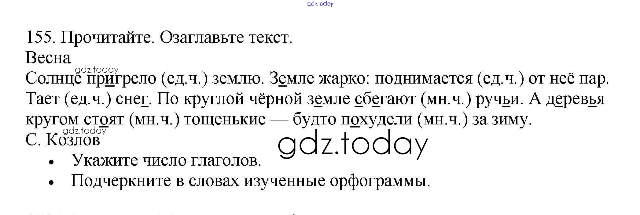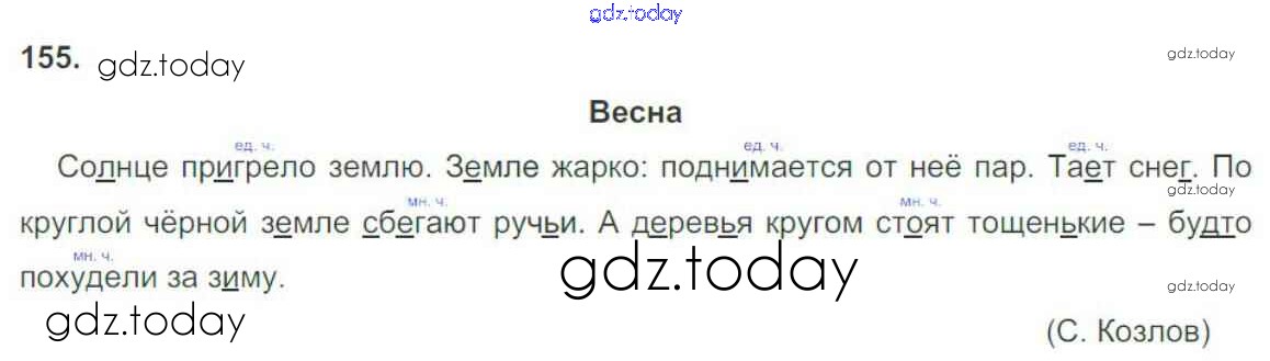 Ответы к Часть 2. Решение к упражнениям 155 Рабочей тетради по Русскому языку для 3 класса Канакина Просвещение Школа России 2012