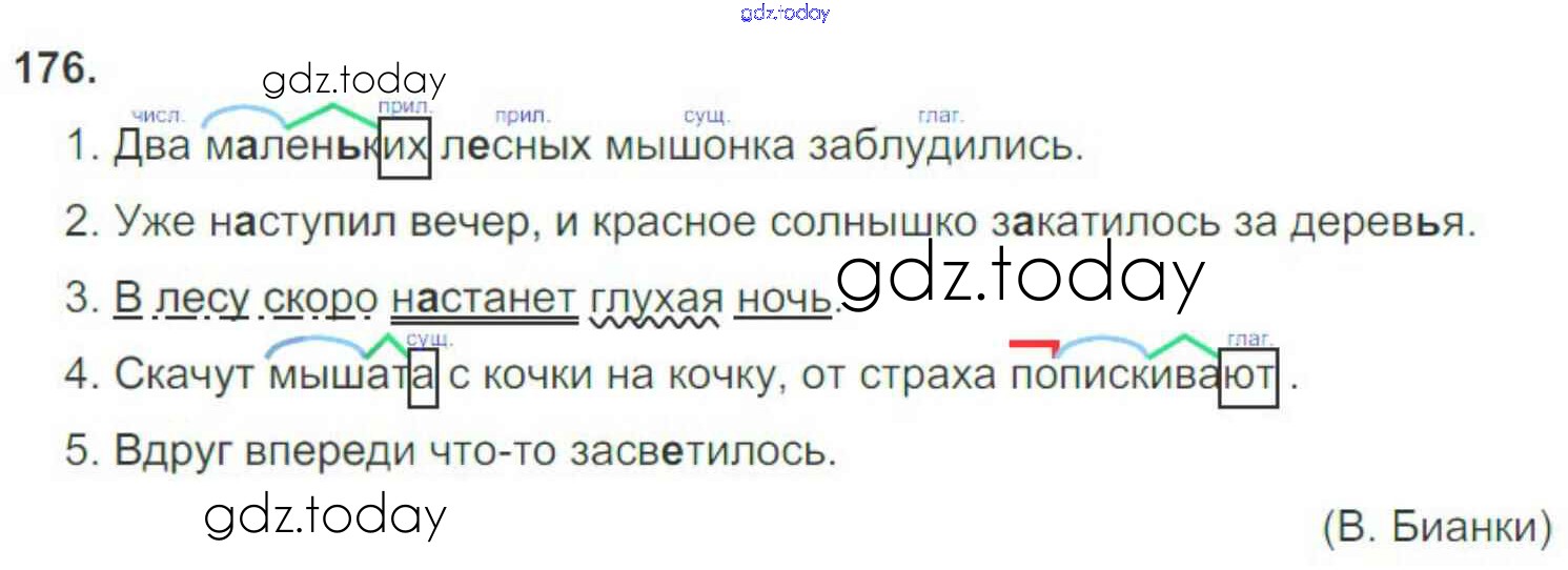 Ответы к Часть 2. Решение к упражнениям 176 Рабочей тетради по Русскому языку для 3 класса Канакина Просвещение Школа России 2012