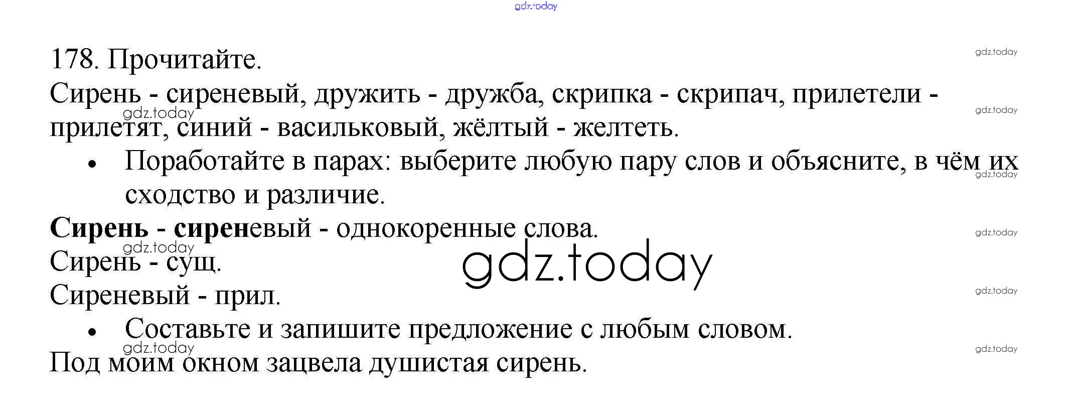 Ответы к Часть 2. Решение к упражнениям 178 Рабочей тетради по Русскому языку для 3 класса Канакина Просвещение Школа России 2012