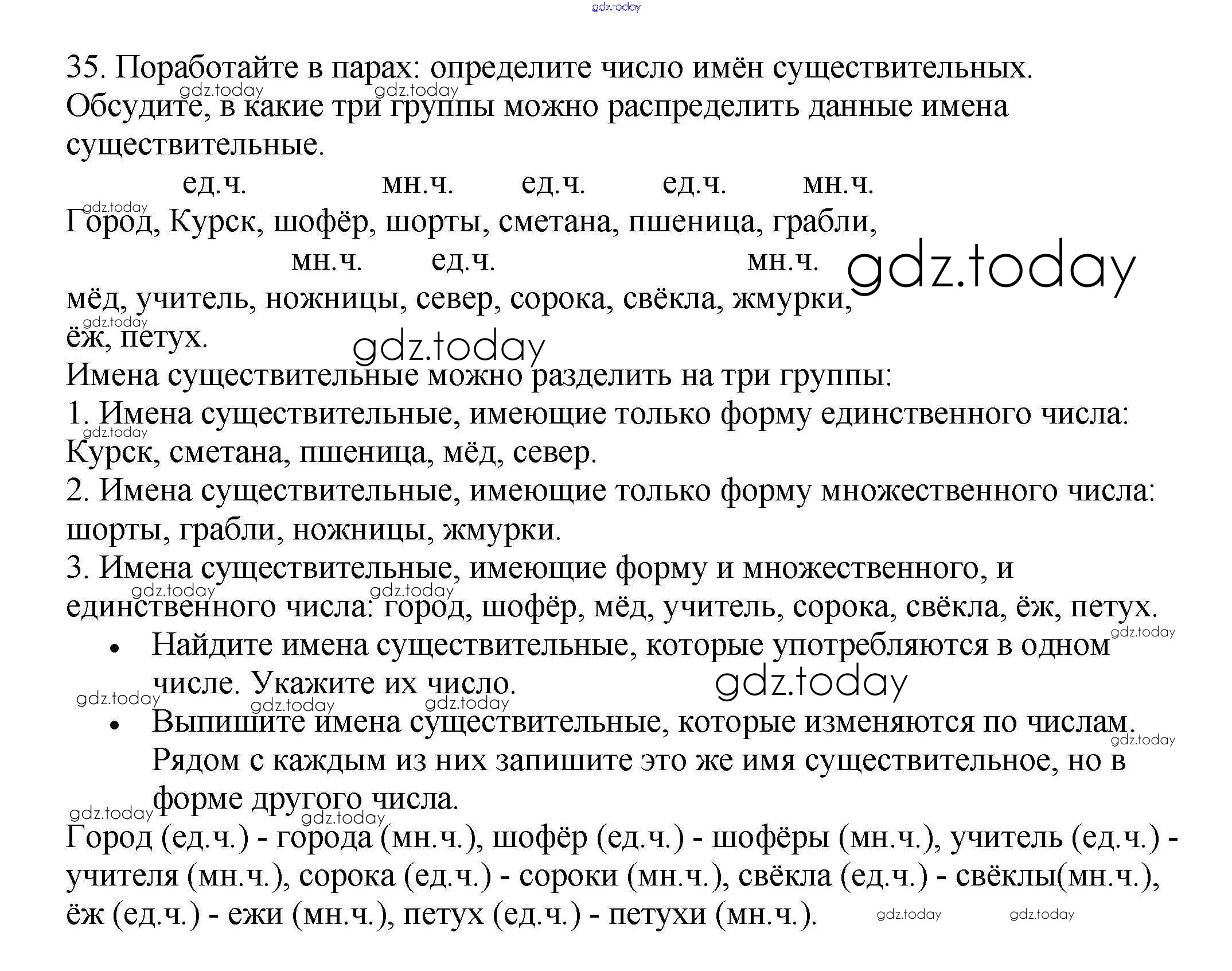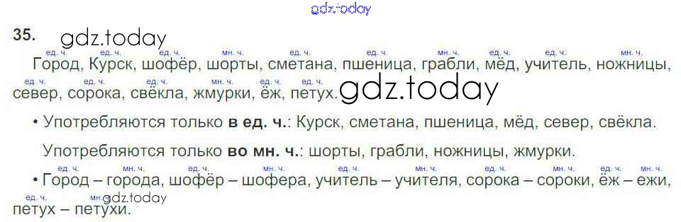 Ответы к Часть 2. Решение к упражнениям 35 Рабочей тетради по Русскому языку для 3 класса Канакина Просвещение Школа России 2012