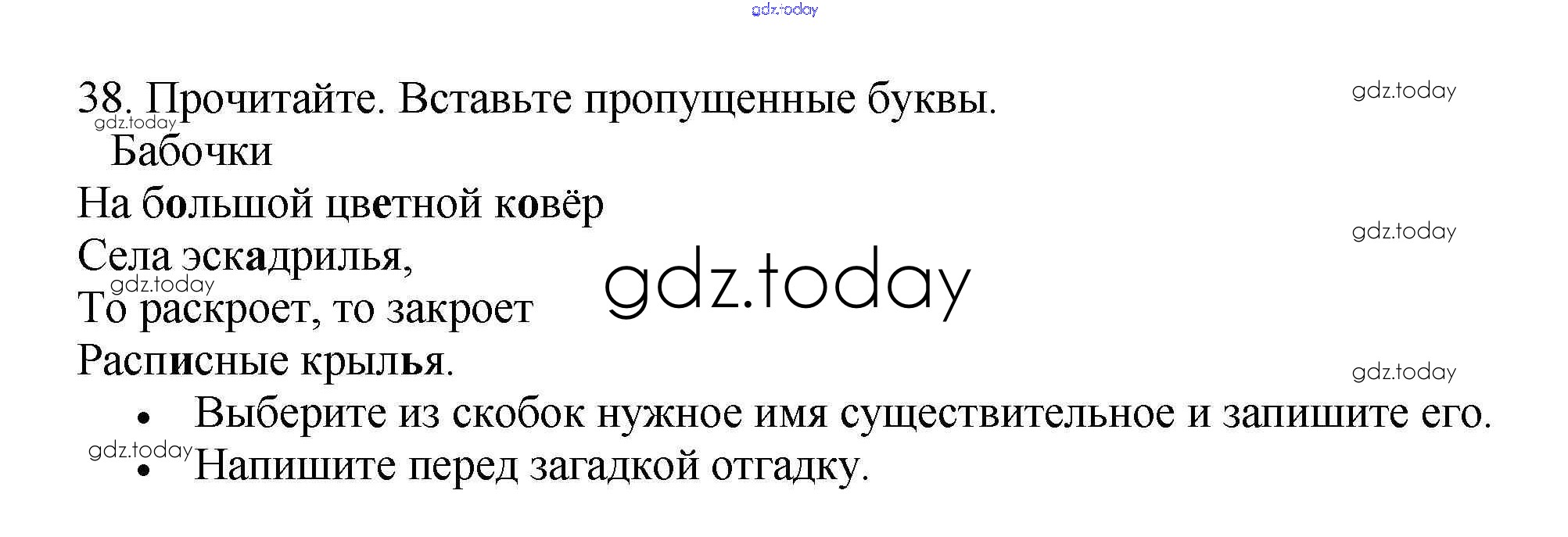 На страницах сайта gdz.today вы найдете учебный и вспомогательный материал, направленный на улучшения знаний школьной программы. ГДЗ - онлайн мир знаний Часть 2. Решение к упражнениям 38 Рабочей тетради по Русскому языку для 3 класса Канакина Просвещение Школа России 2012