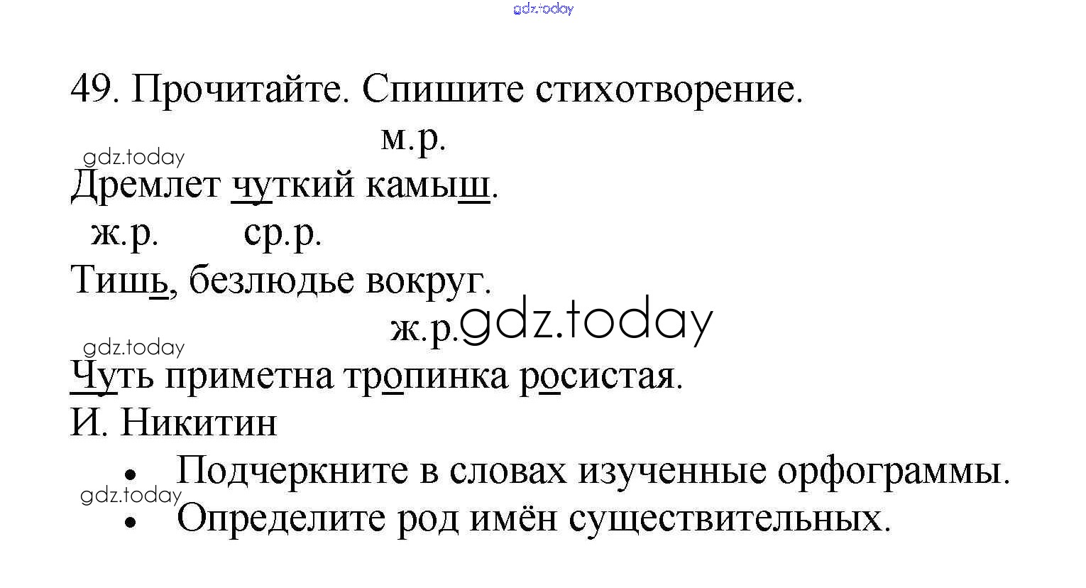 На страницах сайта gdz.today вы найдете учебный и вспомогательный материал, направленный на улучшения знаний школьной программы. ГДЗ - онлайн мир знаний Часть 2. Решение к упражнениям 49 Рабочей тетради по Русскому языку для 3 класса Канакина Просвещение Школа России 2012