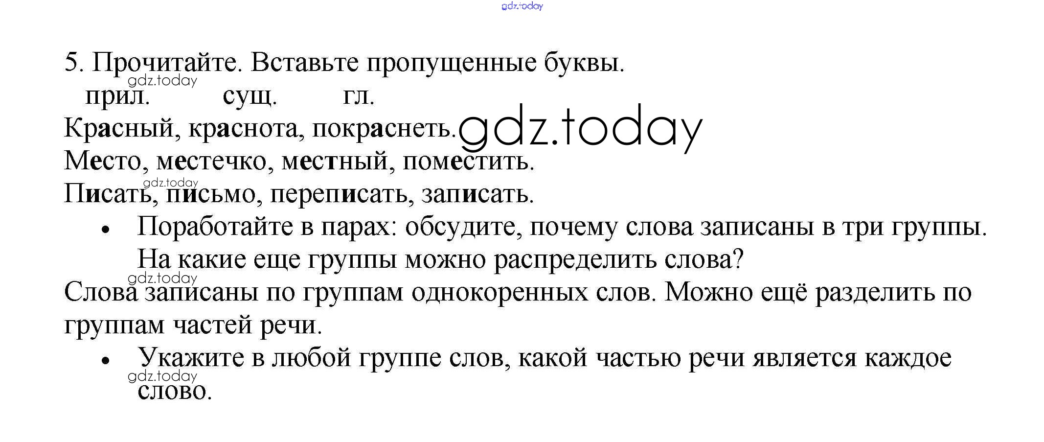 На страницах сайта gdz.today вы найдете учебный и вспомогательный материал, направленный на улучшения знаний школьной программы. ГДЗ - онлайн мир знаний Часть 2. Решение к упражнениям 5 Рабочей тетради по Русскому языку для 3 класса Канакина Просвещение Школа России 2012