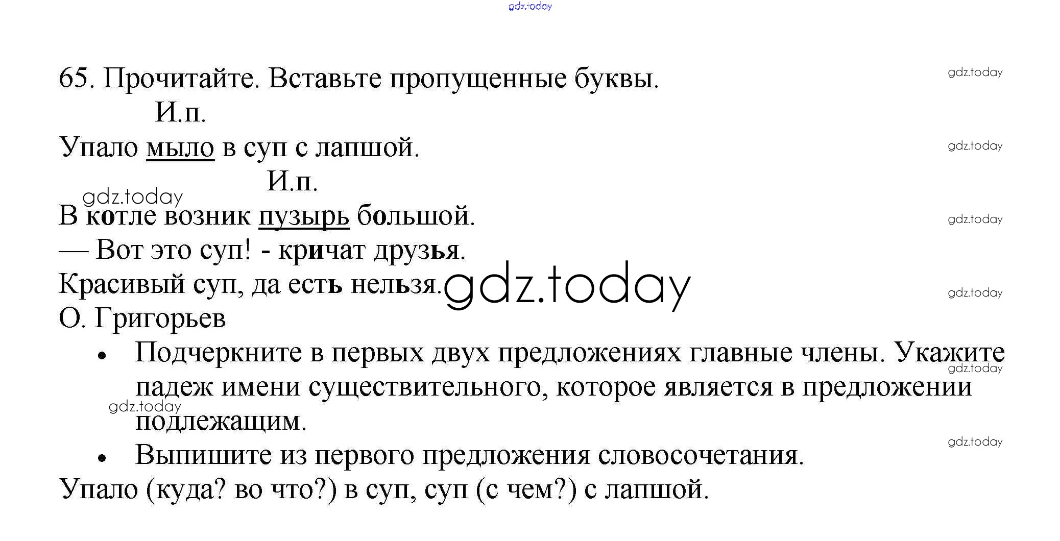На страницах сайта gdz.today вы найдете учебный и вспомогательный материал, направленный на улучшения знаний школьной программы. ГДЗ - онлайн мир знаний Часть 2. Решение к упражнениям 65 Рабочей тетради по Русскому языку для 3 класса Канакина Просвещение Школа России 2012