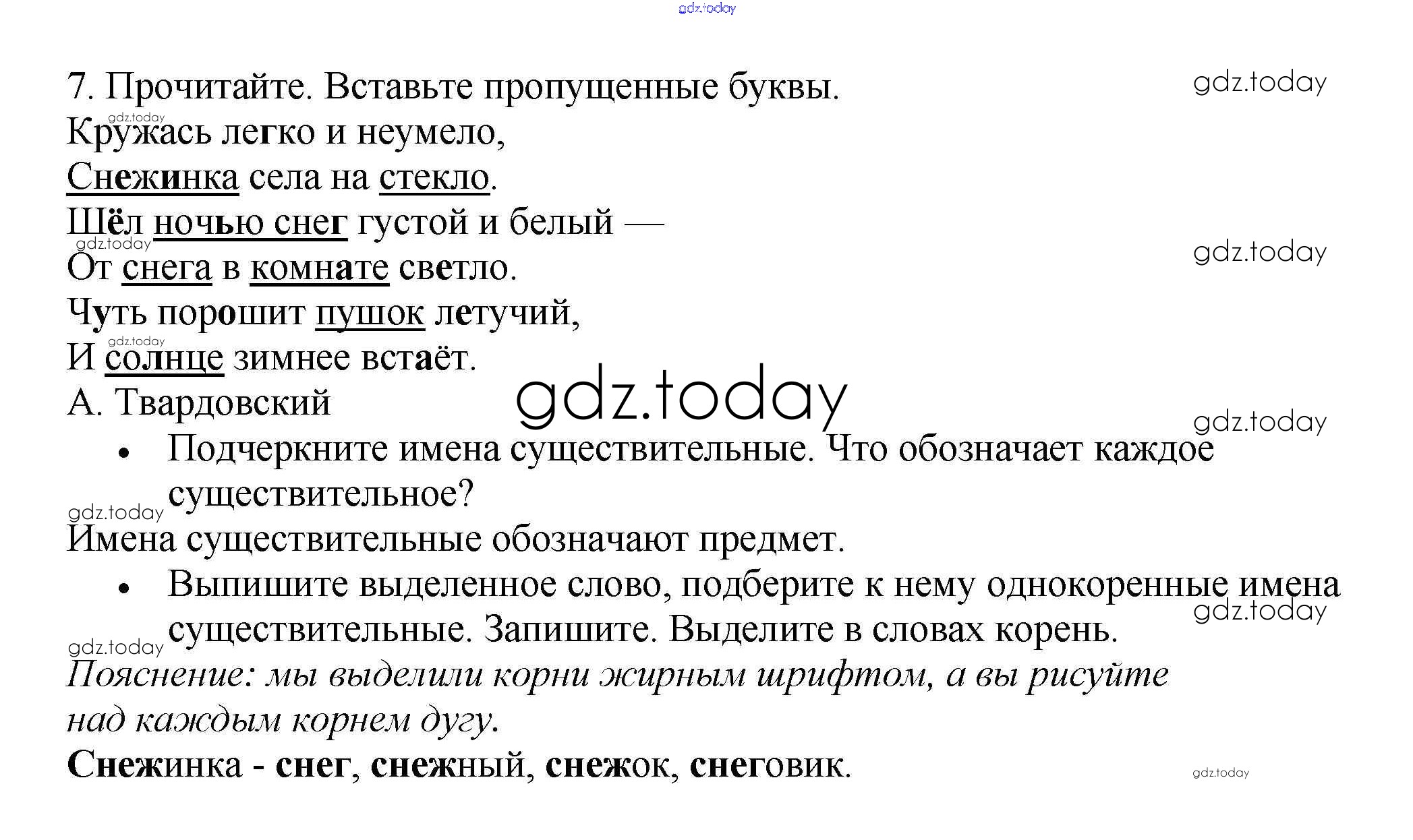 На страницах сайта gdz.today вы найдете учебный и вспомогательный материал, направленный на улучшения знаний школьной программы. ГДЗ - онлайн мир знаний Часть 2. Решение к упражнениям 7 Рабочей тетради по Русскому языку для 3 класса Канакина Просвещение Школа России 2012
