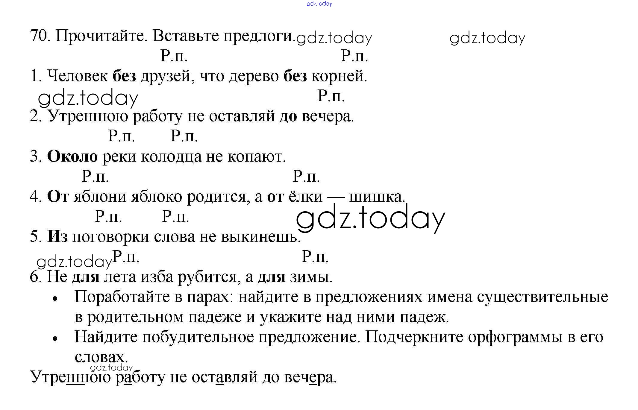 На страницах сайта gdz.today вы найдете учебный и вспомогательный материал, направленный на улучшения знаний школьной программы. ГДЗ - онлайн мир знаний Часть 2. Решение к упражнениям 70 Рабочей тетради по Русскому языку для 3 класса Канакина Просвещение Школа России 2012