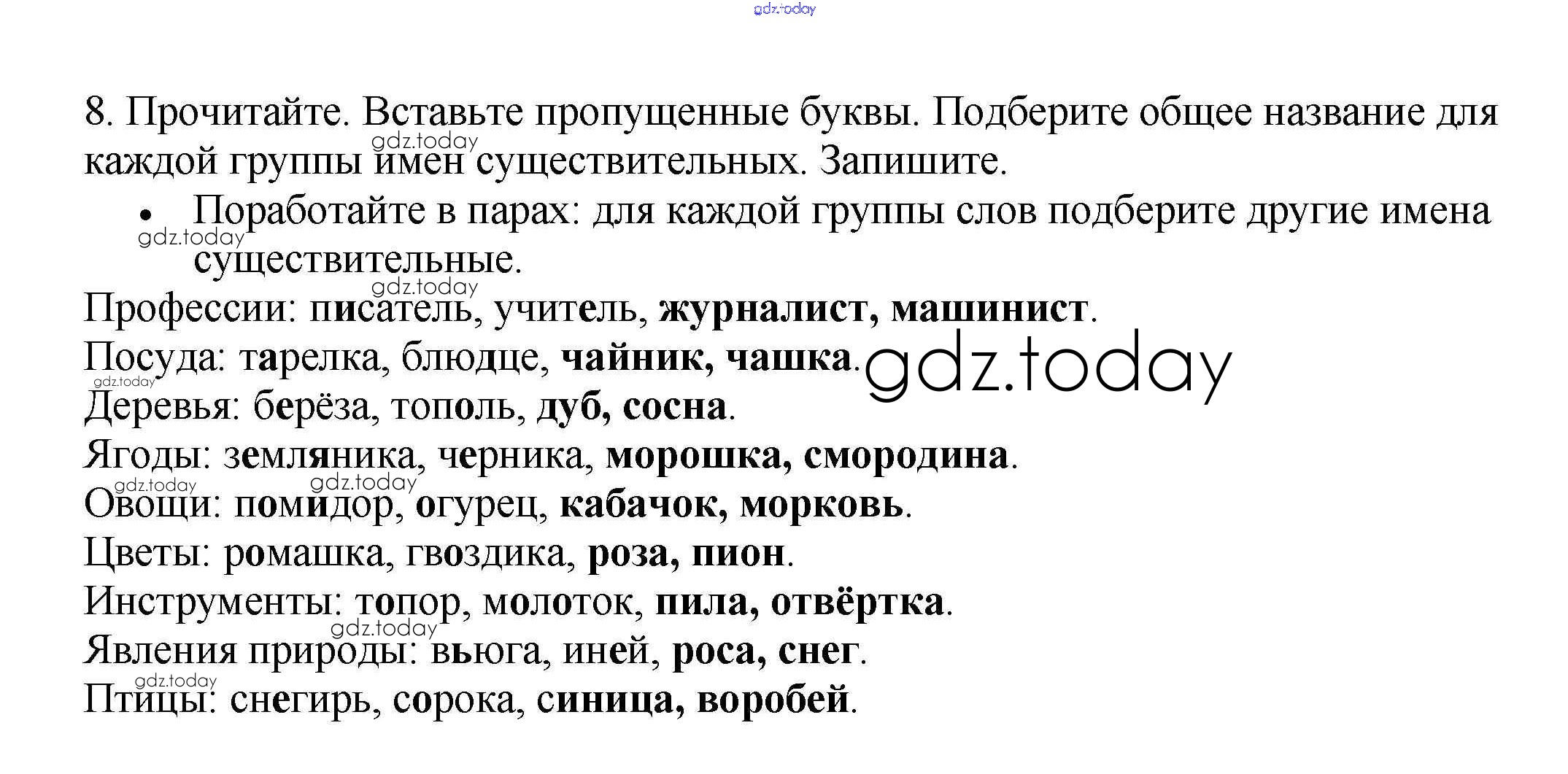 На страницах сайта gdz.today вы найдете учебный и вспомогательный материал, направленный на улучшения знаний школьной программы. ГДЗ - онлайн мир знаний Часть 2. Решение к упражнениям 8 Рабочей тетради по Русскому языку для 3 класса Канакина Просвещение Школа России 2012