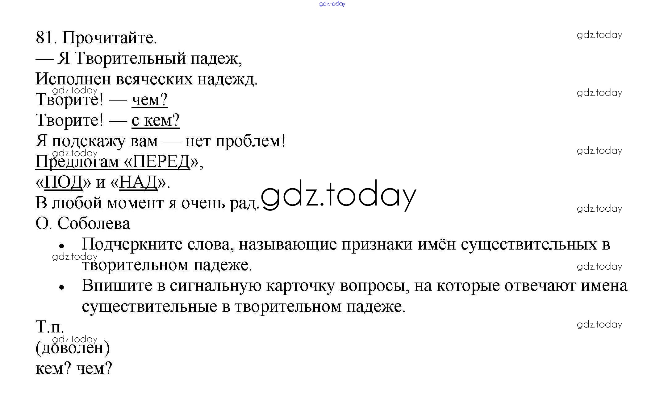 На страницах сайта gdz.today вы найдете учебный и вспомогательный материал, направленный на улучшения знаний школьной программы. ГДЗ - онлайн мир знаний Часть 2. Решение к упражнениям 81 Рабочей тетради по Русскому языку для 3 класса Канакина Просвещение Школа России 2012