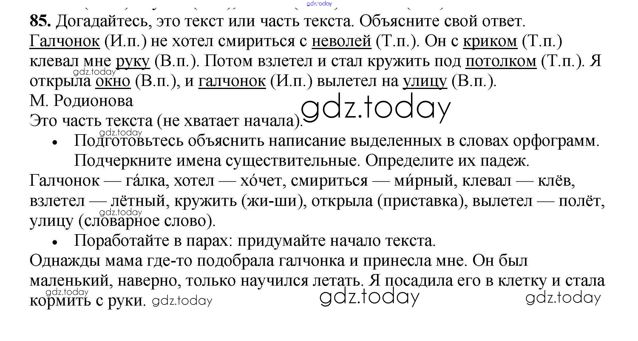 Ответы к Часть 2. Решение к упражнениям 85 Рабочей тетради по Русскому языку для 3 класса Канакина Просвещение Школа России 2012