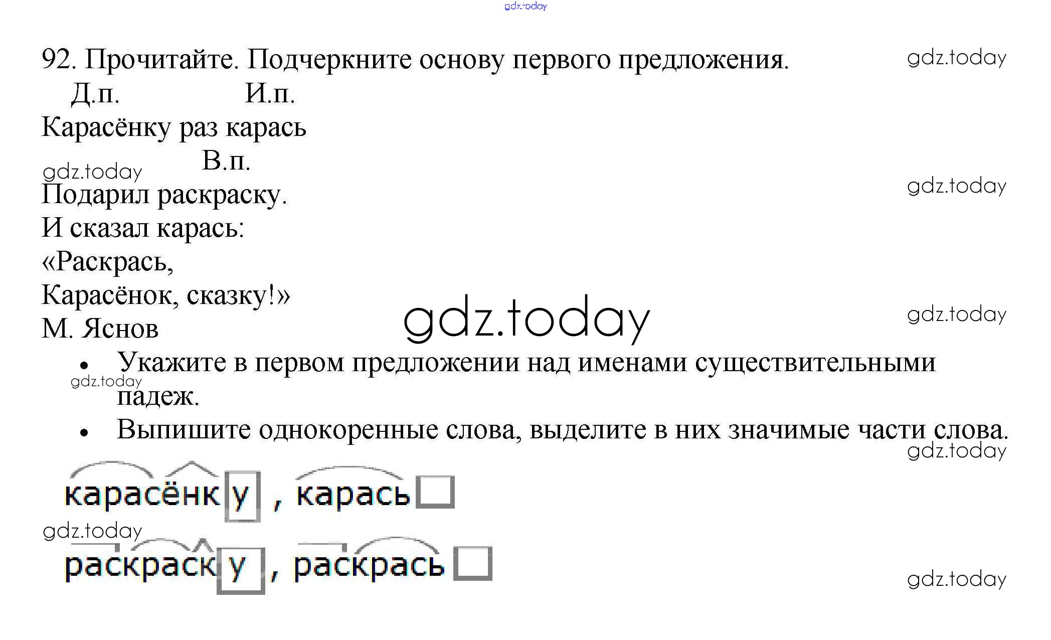 На страницах сайта gdz.today вы найдете учебный и вспомогательный материал, направленный на улучшения знаний школьной программы. ГДЗ - онлайн мир знаний Часть 2. Решение к упражнениям 92 Рабочей тетради по Русскому языку для 3 класса Канакина Просвещение Школа России 2012